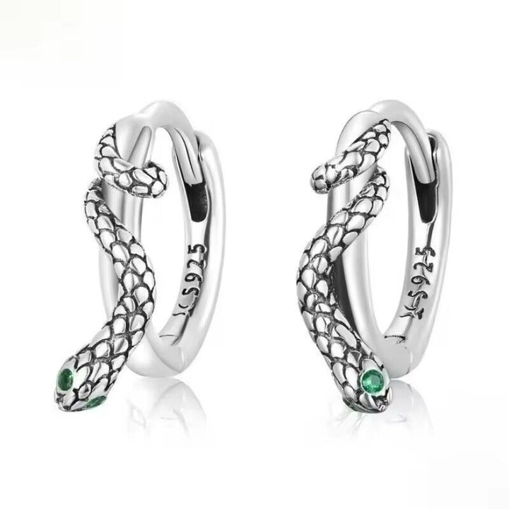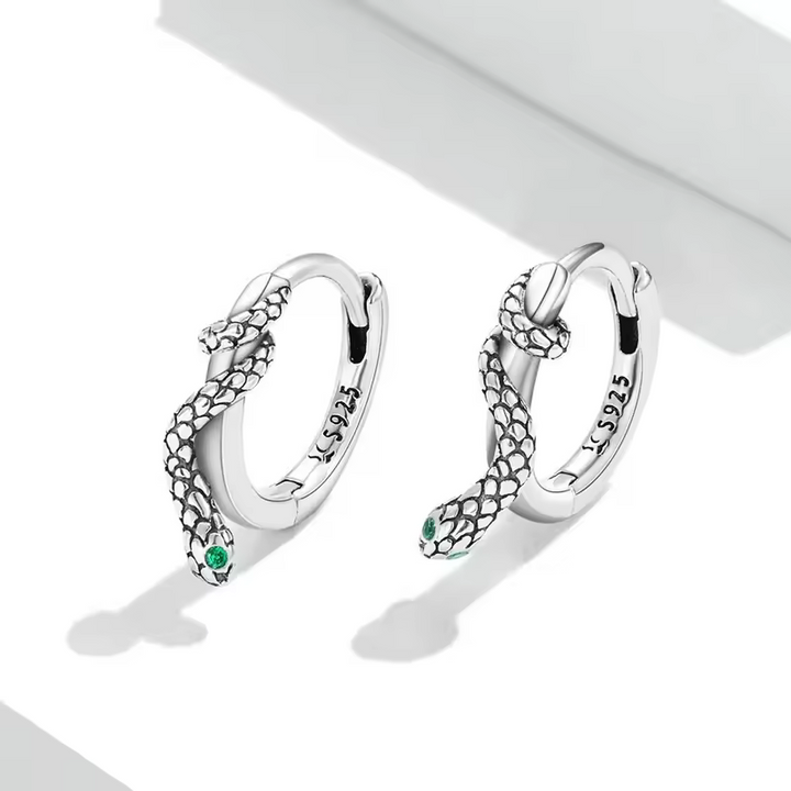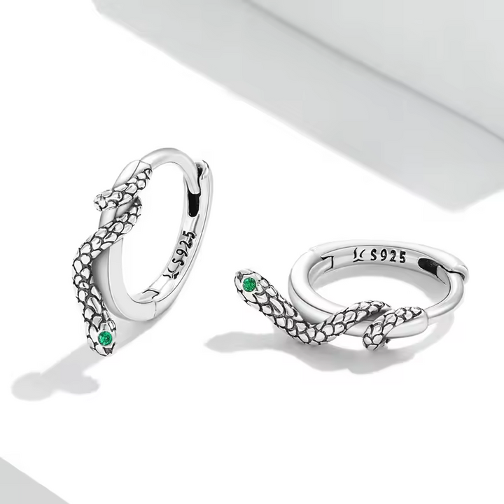 Creolen Kobra Schlange Silber 925 Zirkonia geschwärzt Damen Ohrringe