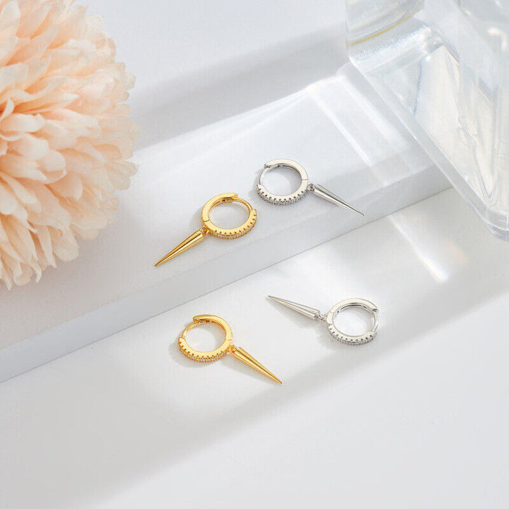 Creolen langer Kegel Anhänger echt Silber 925 Zirkonia Damen Ohrringe