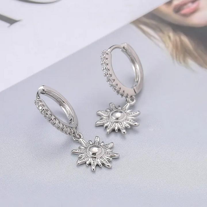 Creolen m-Anhänger Sonnenblume Silber 925 Damen Ohrringe