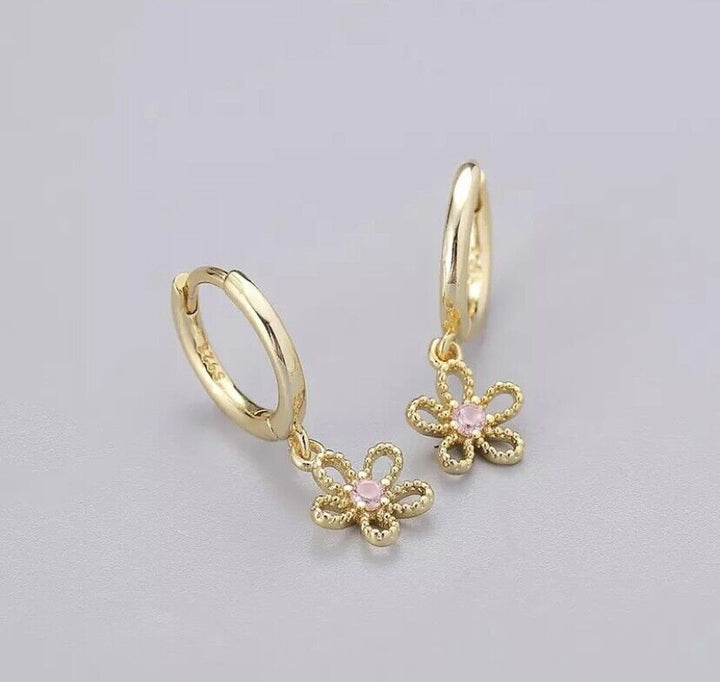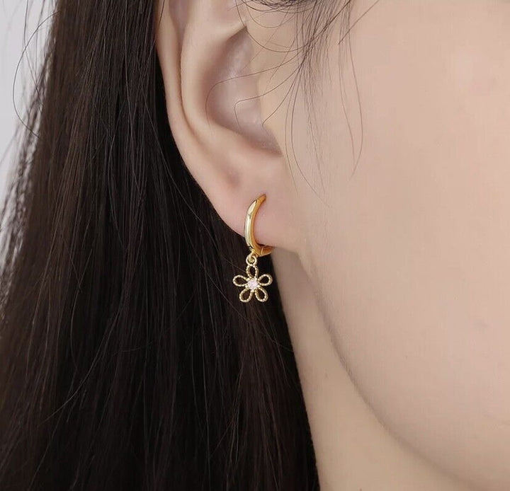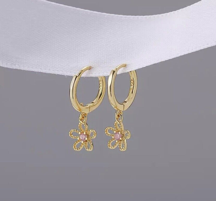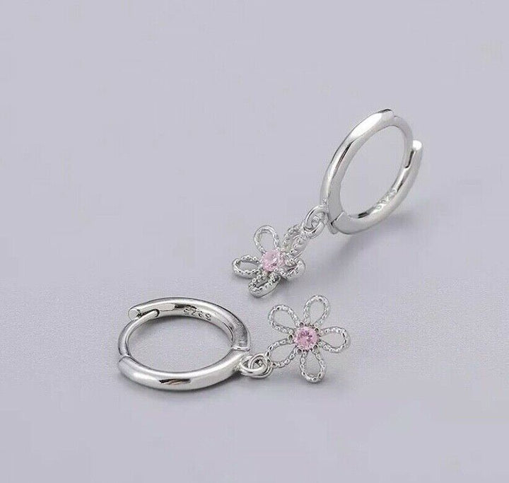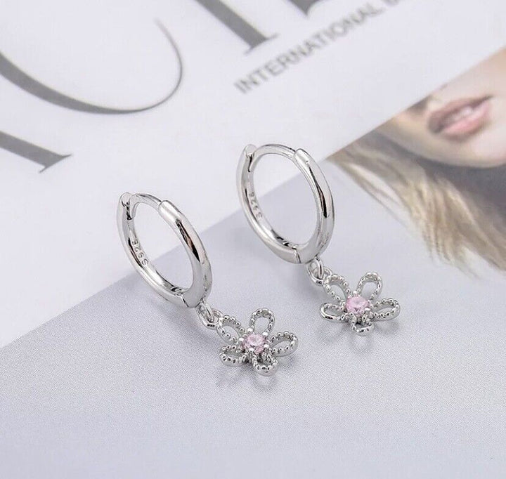 Creolen mit Anhänger Blume Silber 925 Damen Ohrringe mit Zirkonia