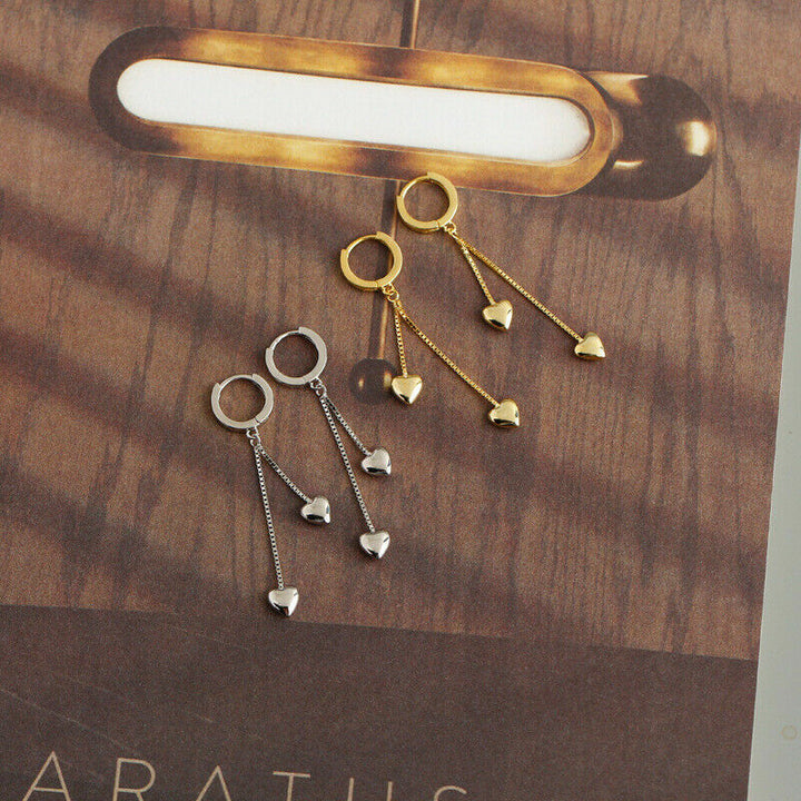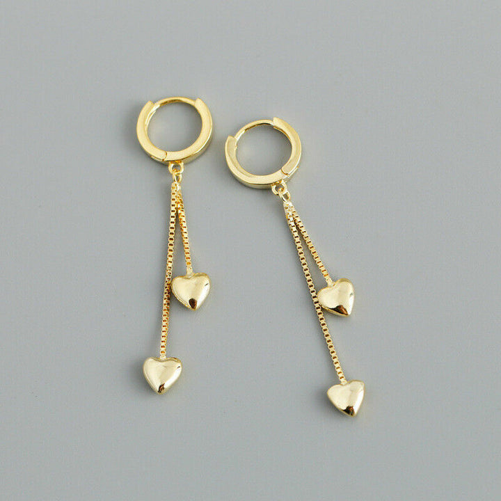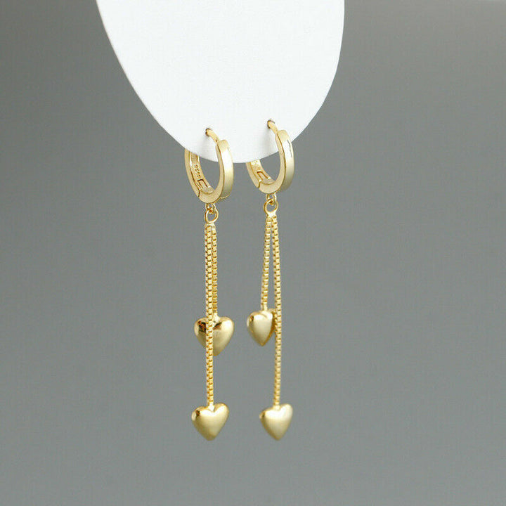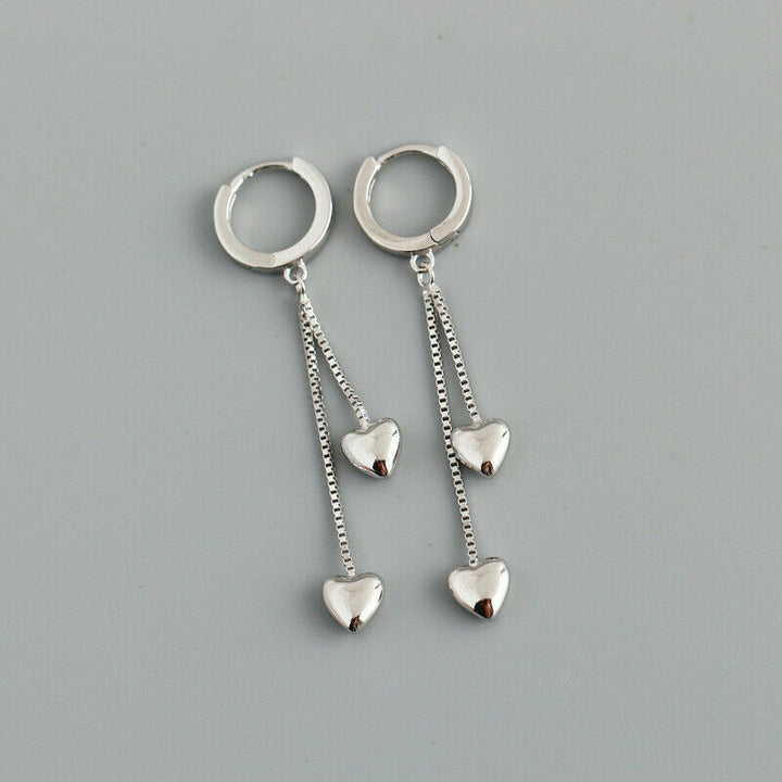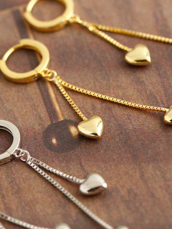Creolen mit Anhänger-Kette und Herz aus Sterlingsilber 925, Damen Ohrringe.