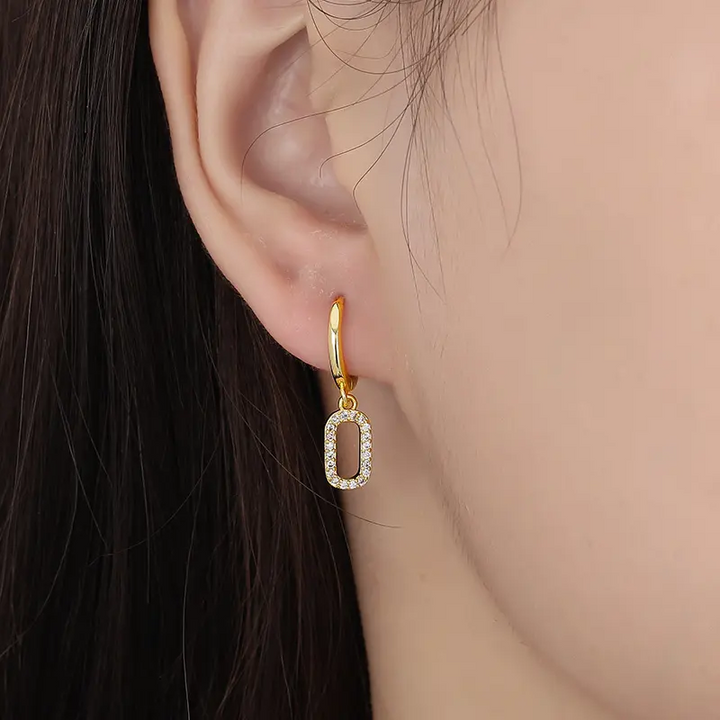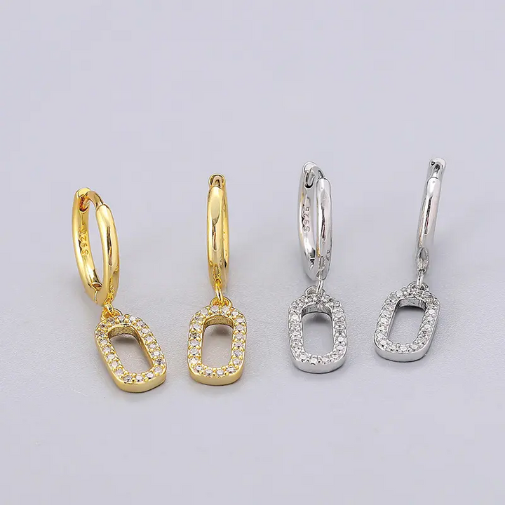 Creolen mit Anhänger Rechteck Silber 925 Zirkonia Damen Ohrringe