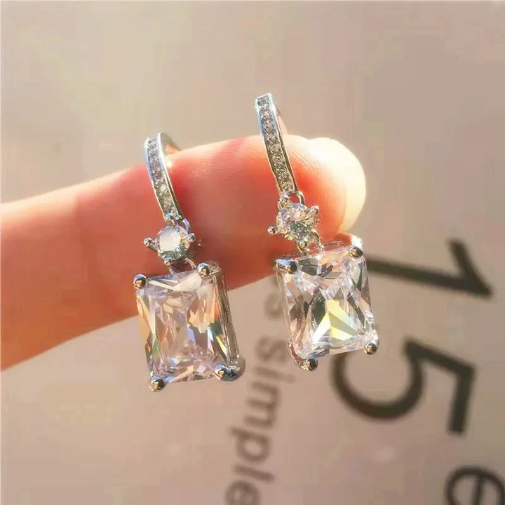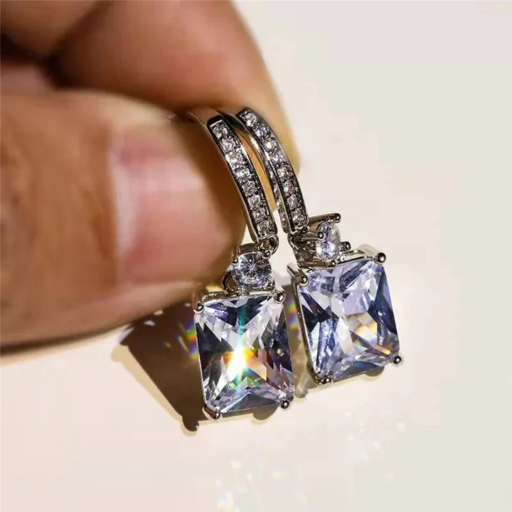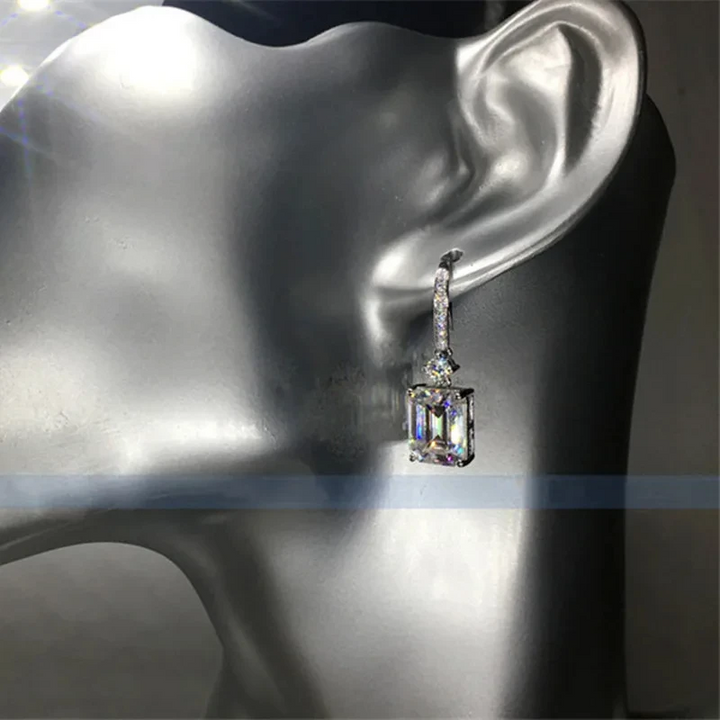 Creolen mit Anhänger Rechteck Platin Zirkonia Damen Ohrringe Ohrhänger