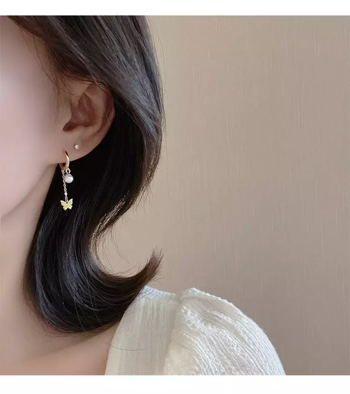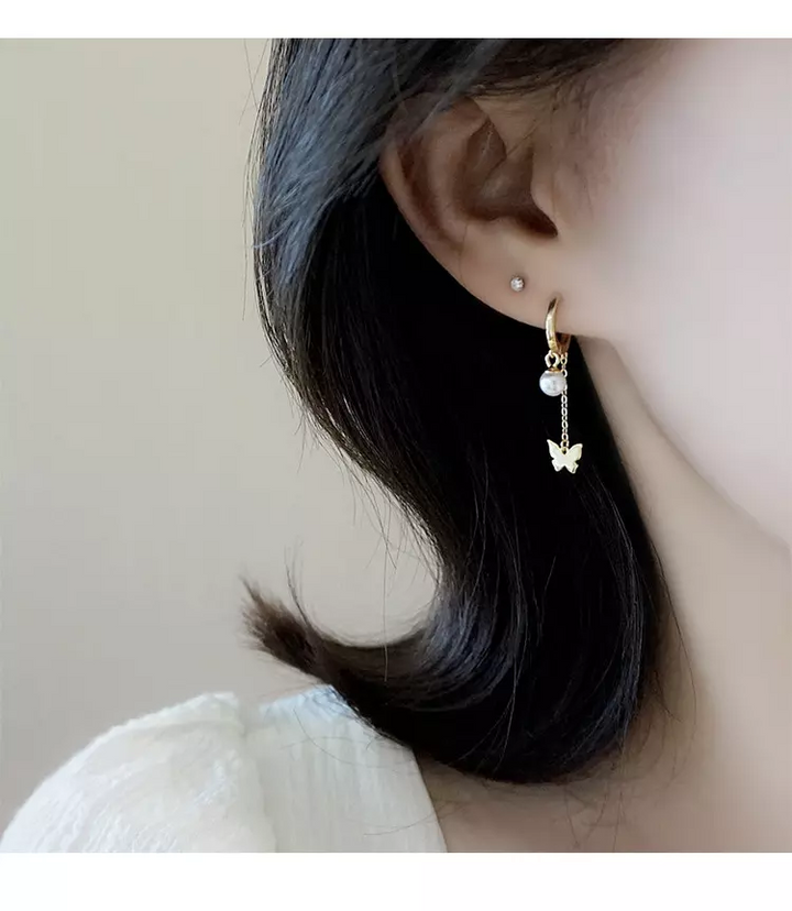 Creolen mit Anhänger Schmetterling Silber 925 Perle Damen Ohrringe