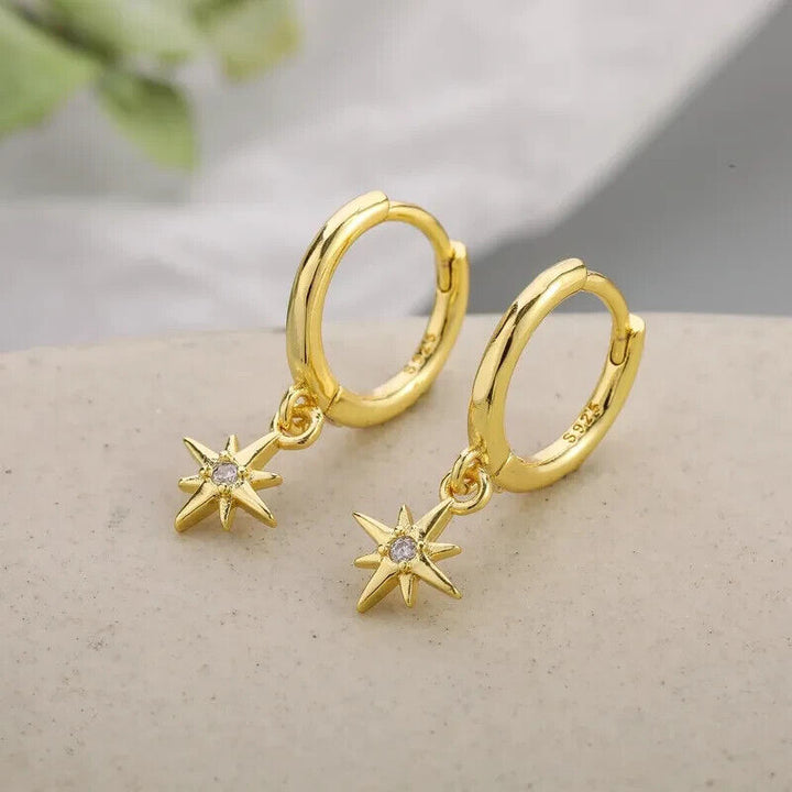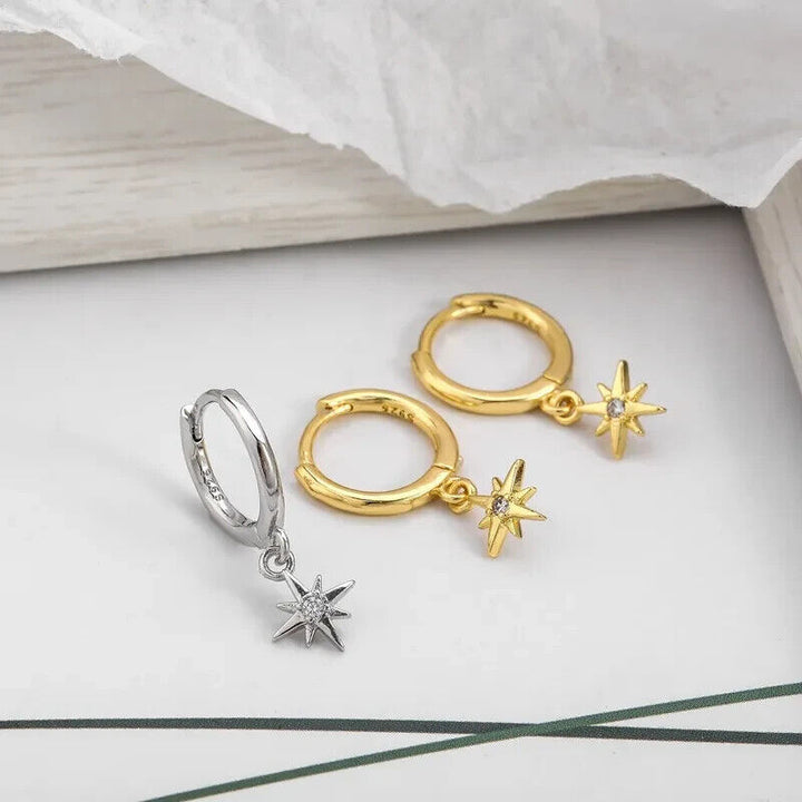 Creolen mit Anhänger Stern echt Silber 925 Ohrringe Rosa Zirkonia Ohrhänger