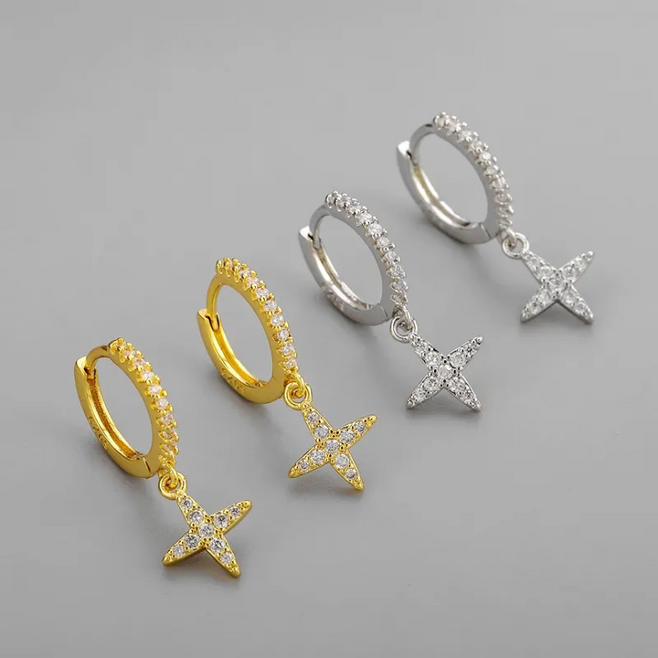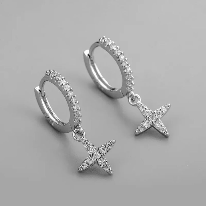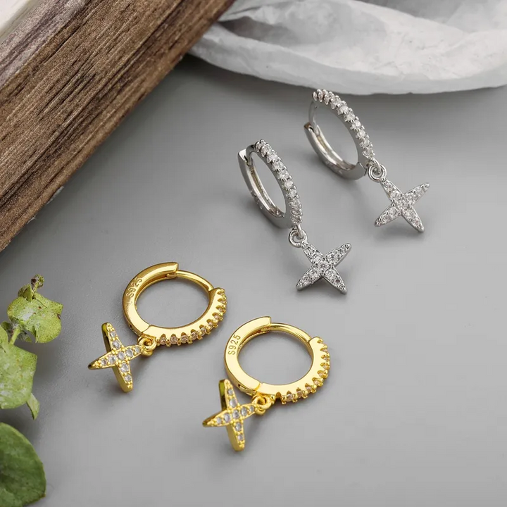 Creolen mit Anhänger X Silber 925 Zirkonia Damen Ohrringe - Ohrhänger