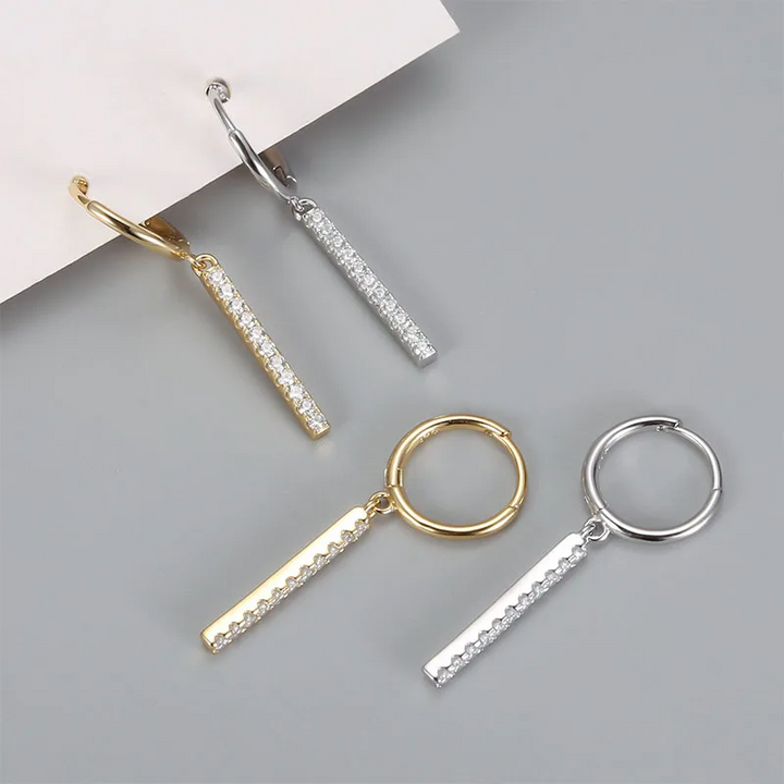 Creolen mit Anhänger Zirkonia Rechteck Sterling Silber 925 Damen Ohrringe