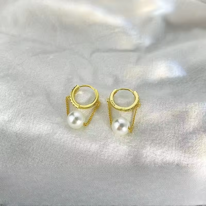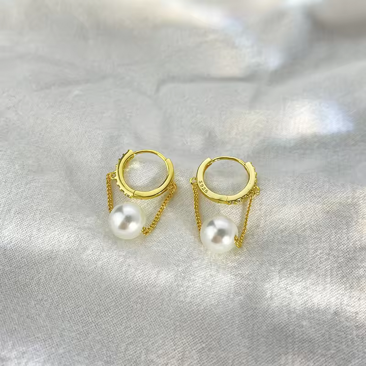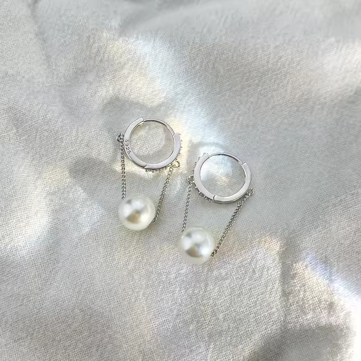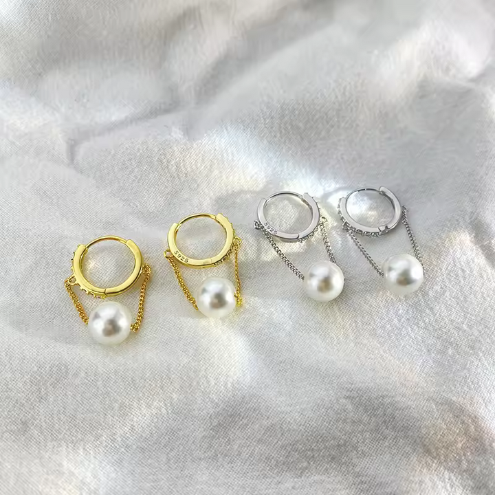 Creolen mit Perlen echt Sterling Silber 925 Damen Ohrringe Ohrhänger
