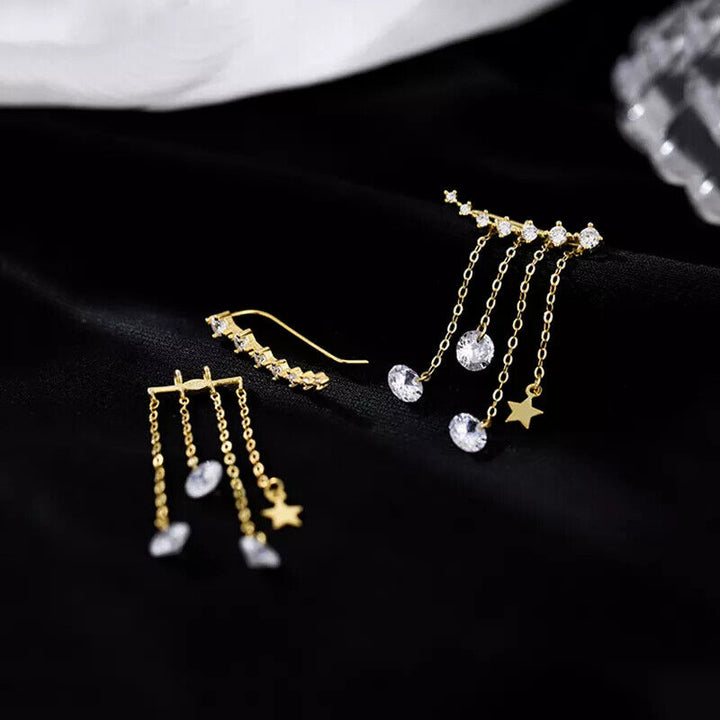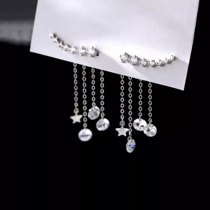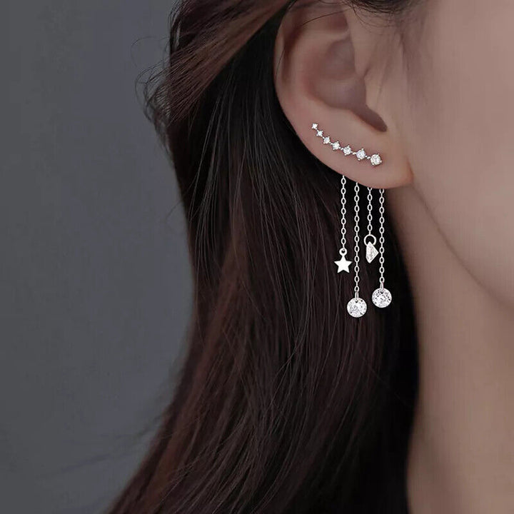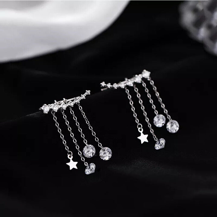 Ohrhänger Kette Sterling Silber 925 Stern-Zirkonia Damen Ohrringe