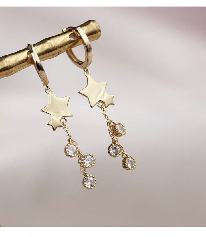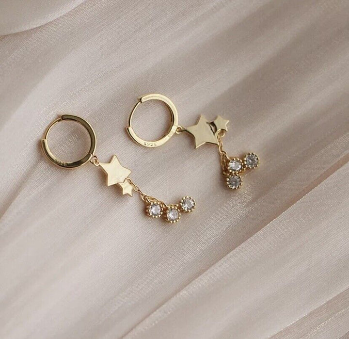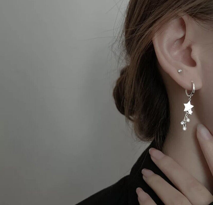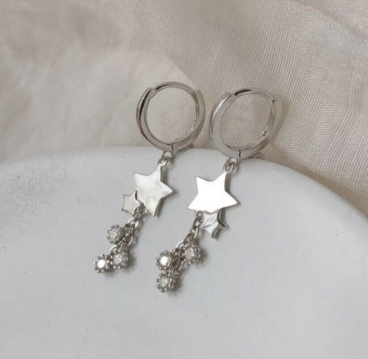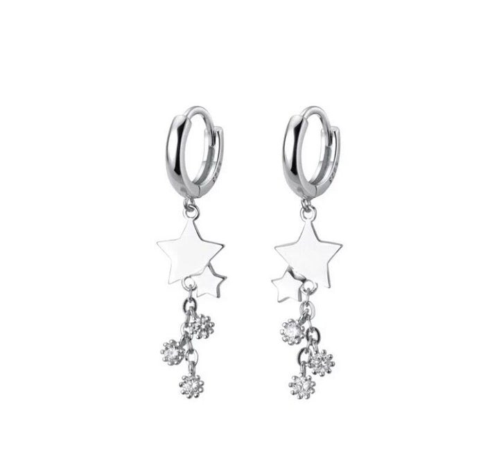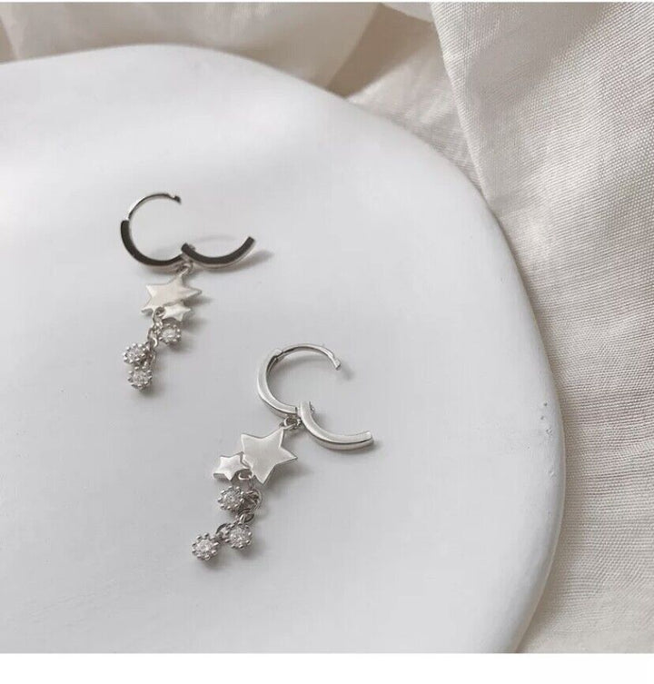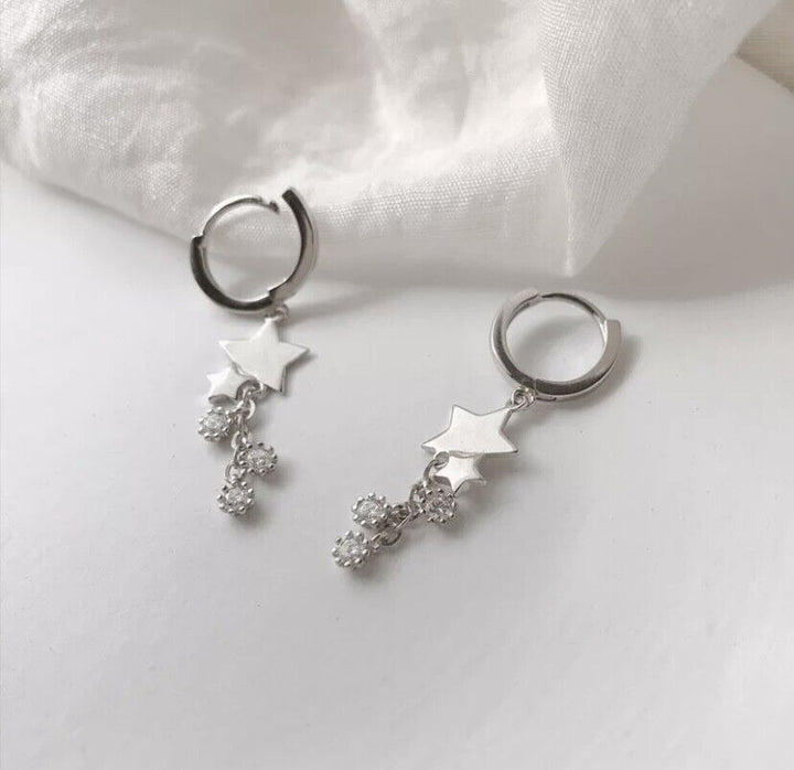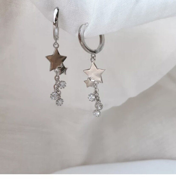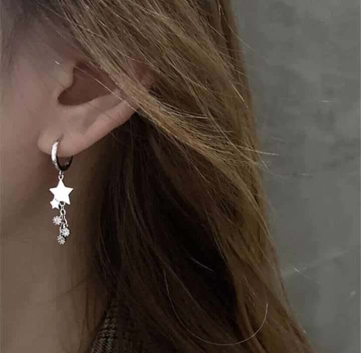 Creolen Ohrringe Stern Lange Ohrhänger Silber 925 Damen