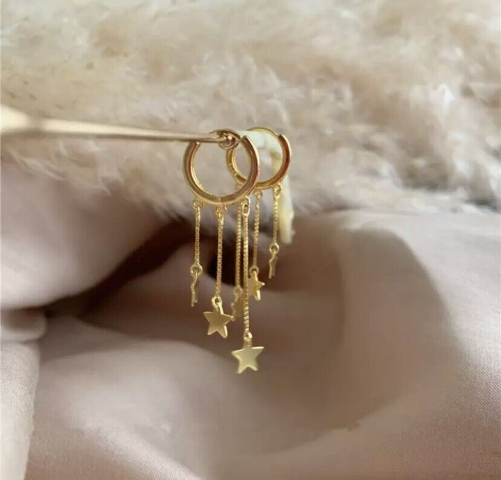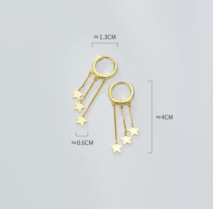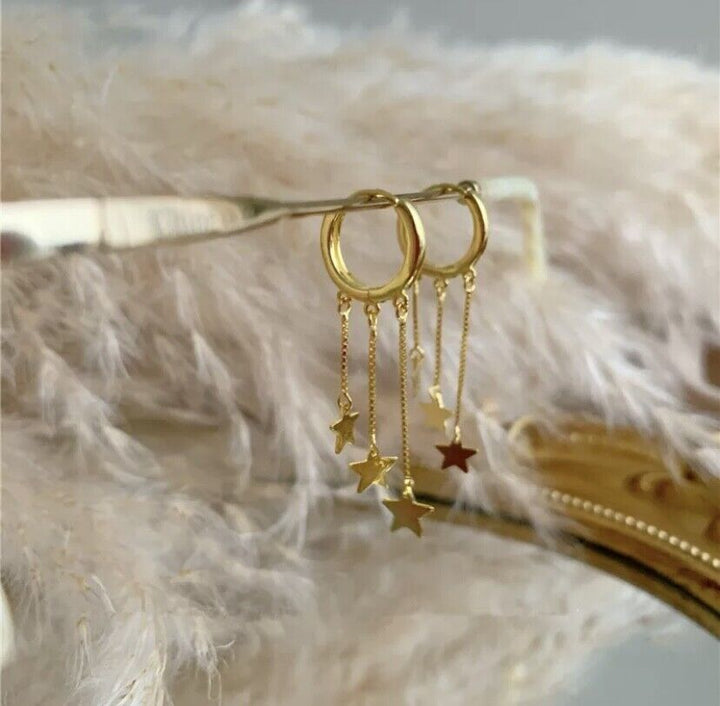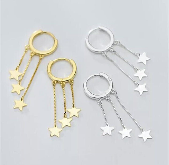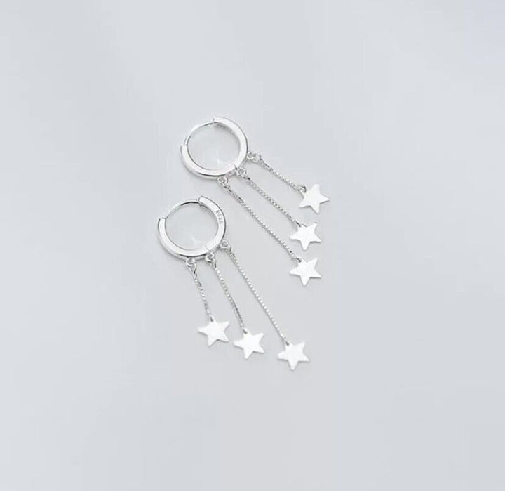 Creolen Sternen Lange Ohrhänger Silber 925 Damen Ohrringe