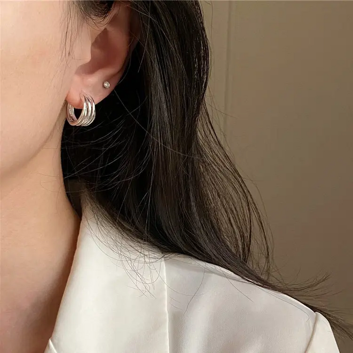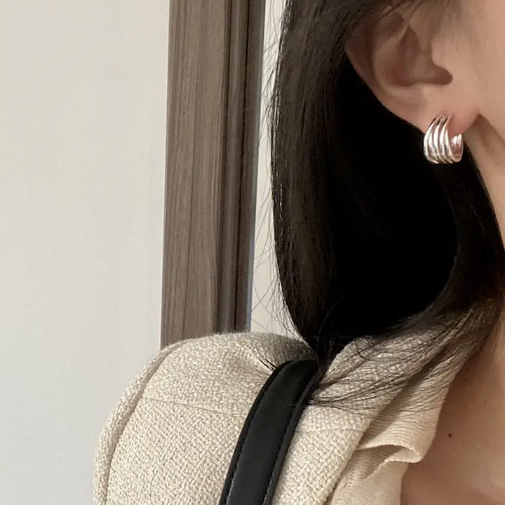 Creolen Streifen Sterling Silber 925 Damen Ohrringe