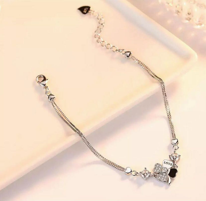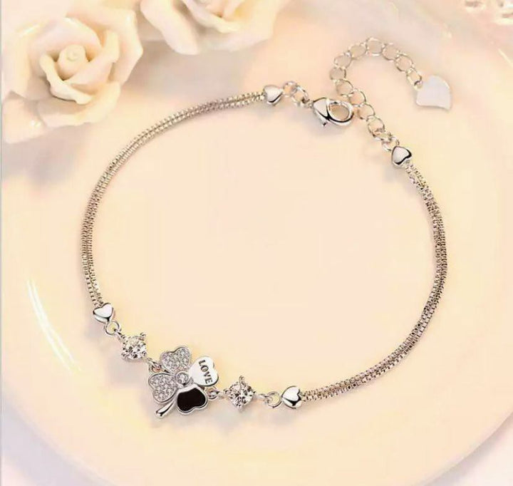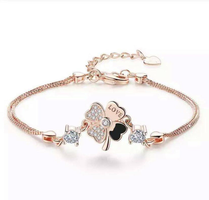 Damen Armband Sterlingsilber 925 Lucky Rose Blume Glück Damen Armkette