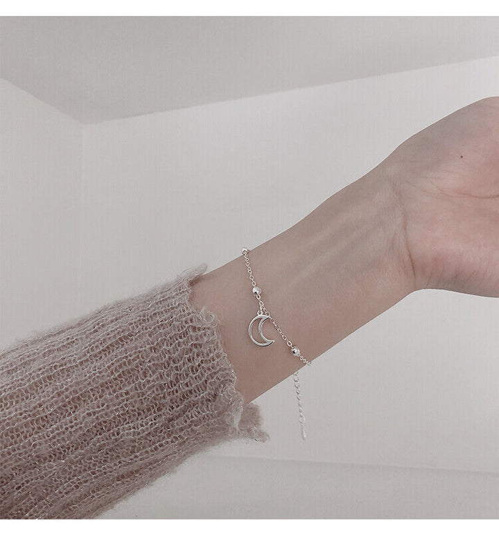 925 Silber Damen Armkette / Fußkettchen – Mond und Kugeln / 16-21 cm
