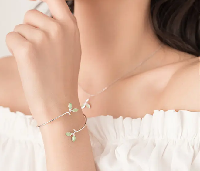 Damen Armreif Blatter Blatt Sterling Silber 925 Blumen Armband Armkette