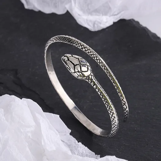 Damen Armreif Schlange Sterling Silber 925 Geschwärzt Armband Armkette