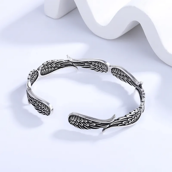 Damen Armreifen Engelsflügel Sterling Silber 925 Geschwärzt Armband