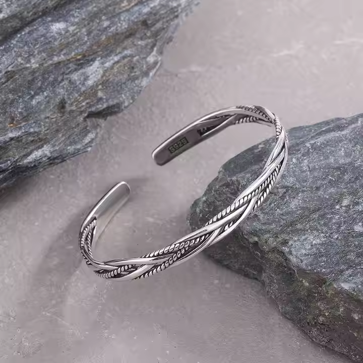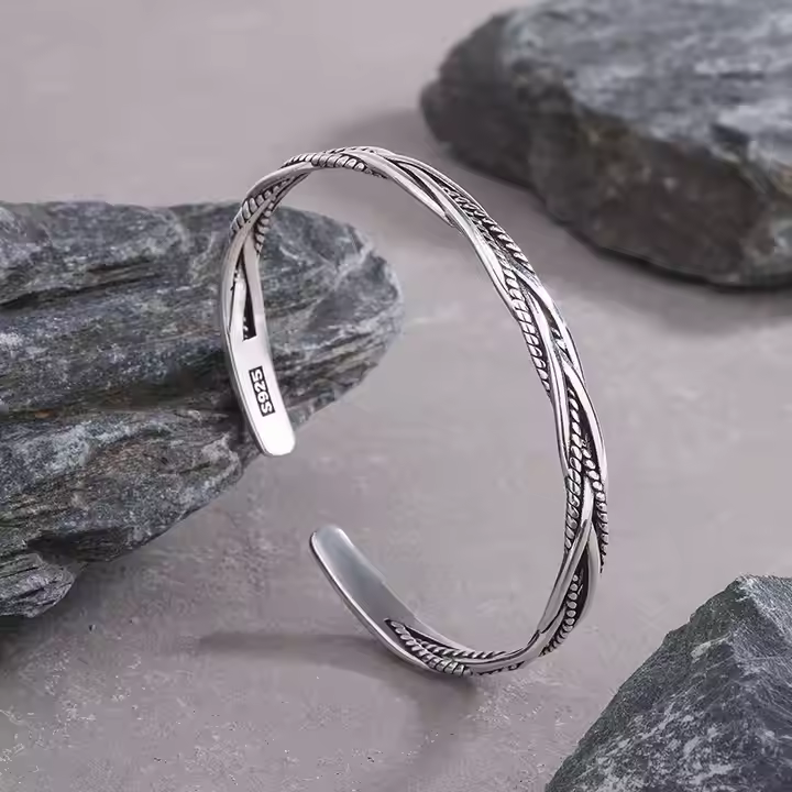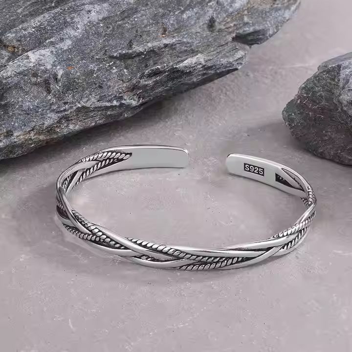 Damen Armreifen Sterling Silber 925 Geschwärzt Herren Armband Armkette
