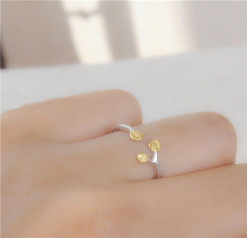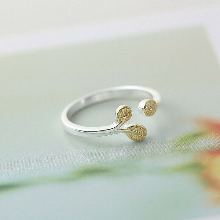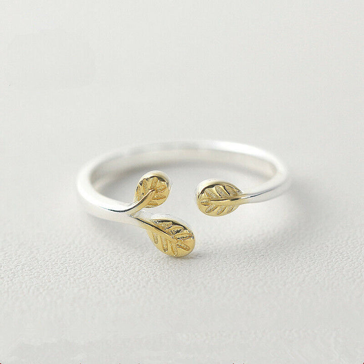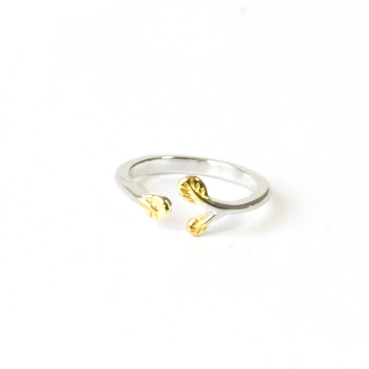 Damen Blatt Ring Sterling Silber 925/ 18k offen 47-52