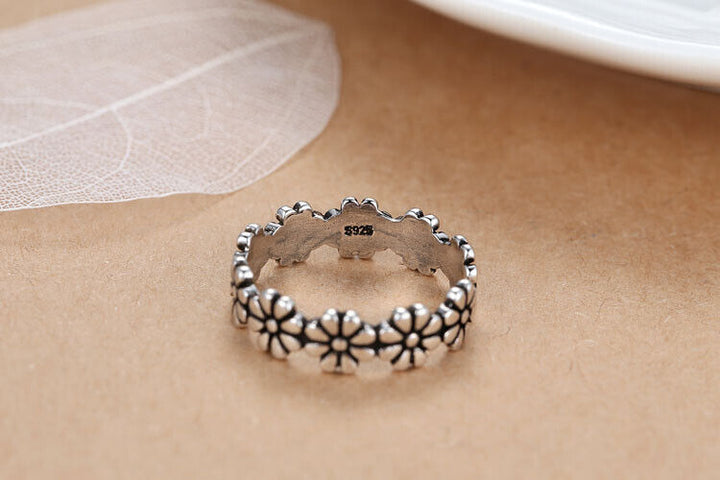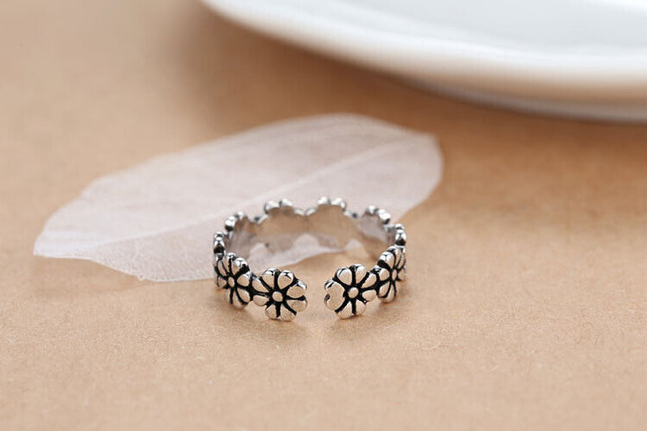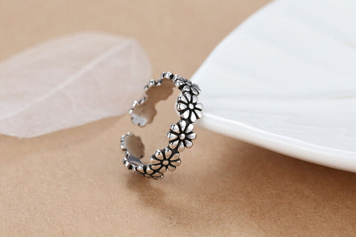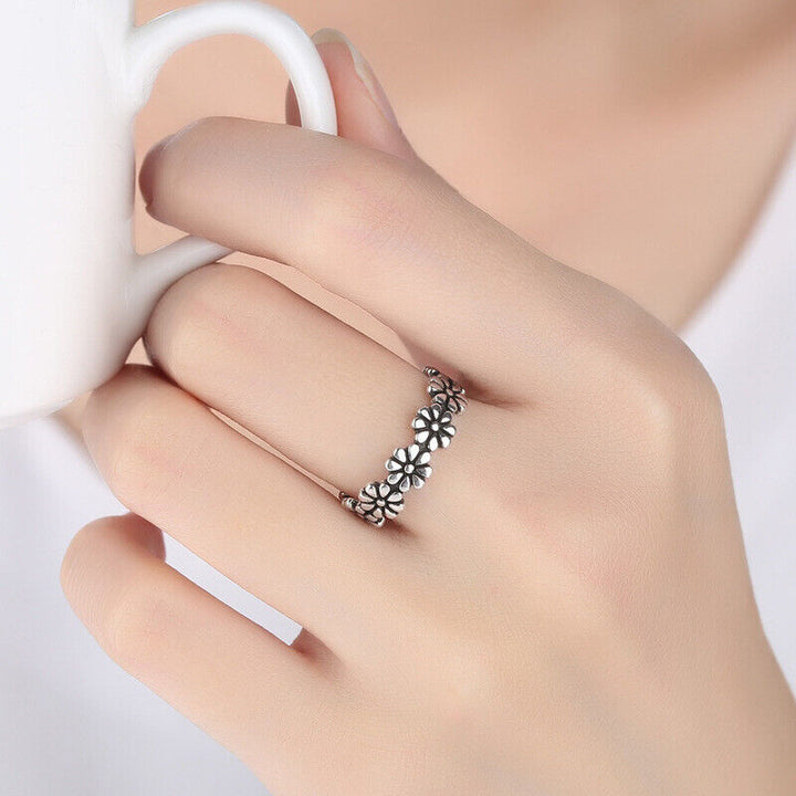 Damen Blumen Ring Silber 925 Geschwärzt Größenveränderbare 48-53