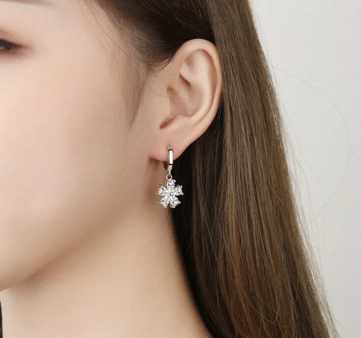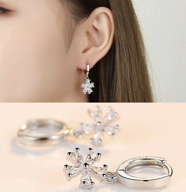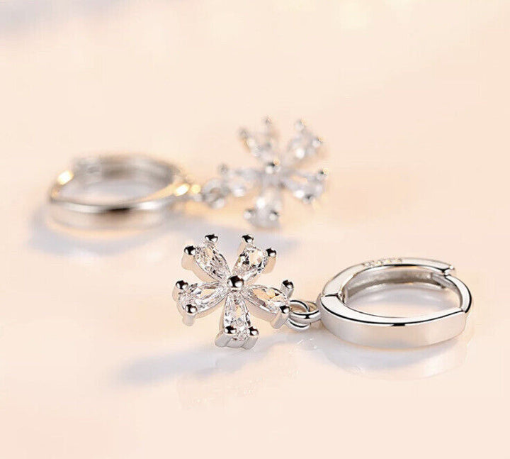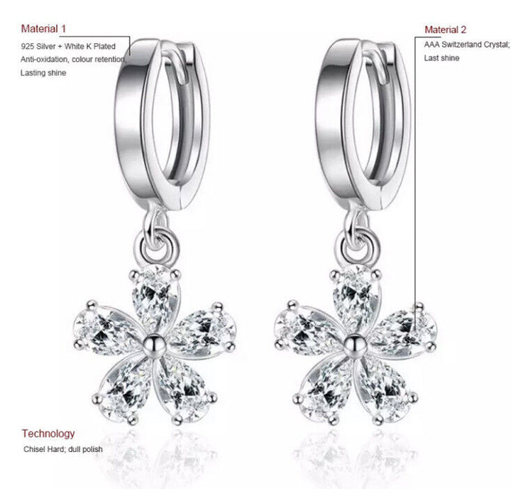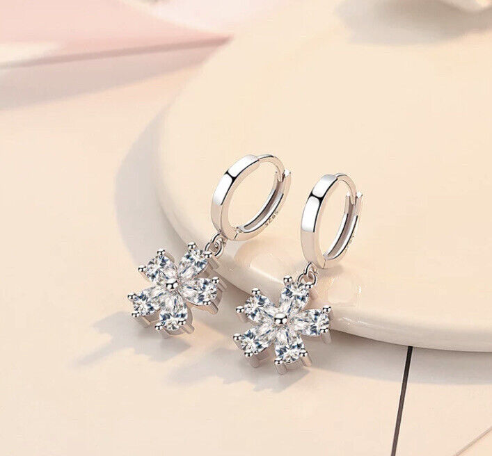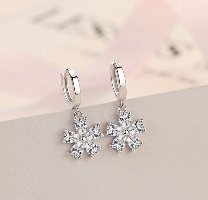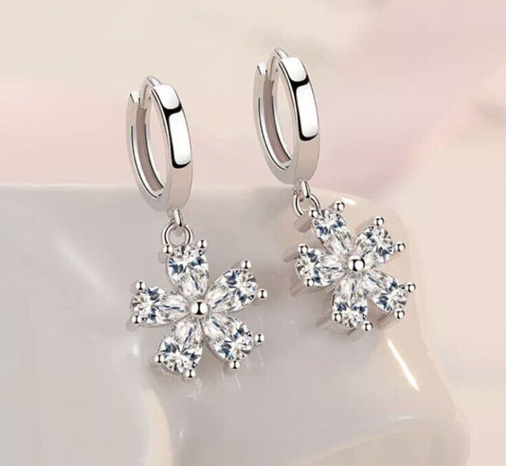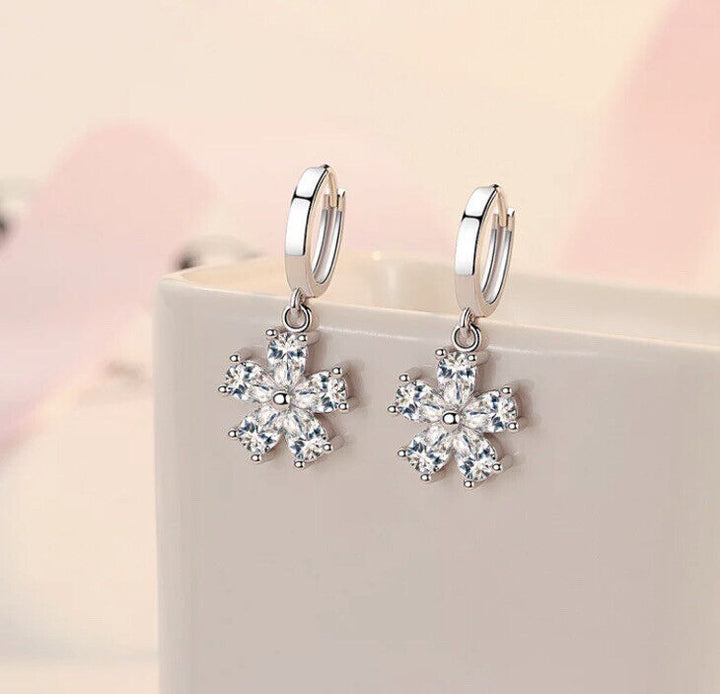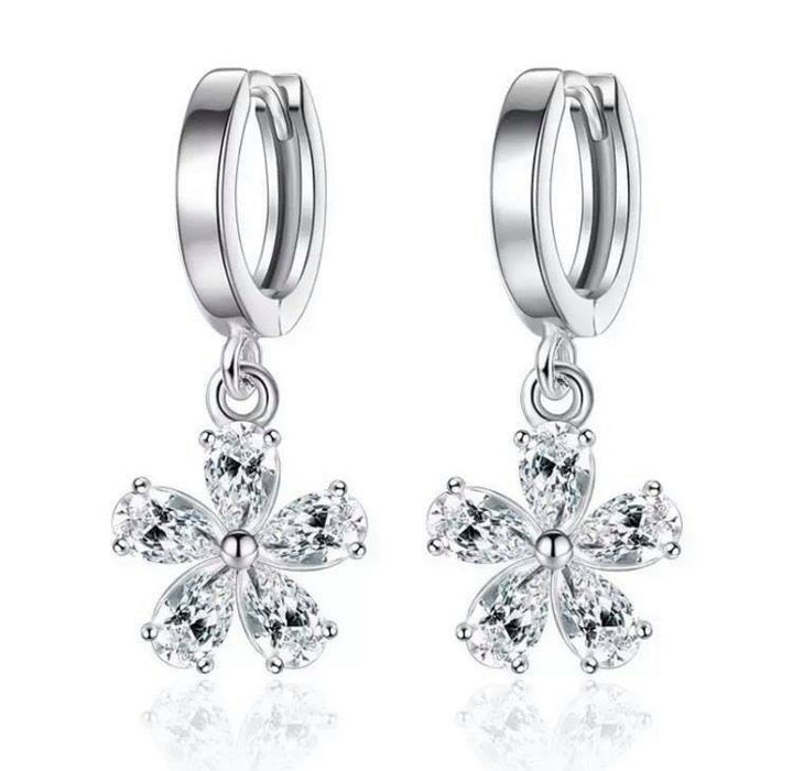 Damen Creole, Creolen, Silber 925, Zirkonia, 925er, Blume Ohrringe