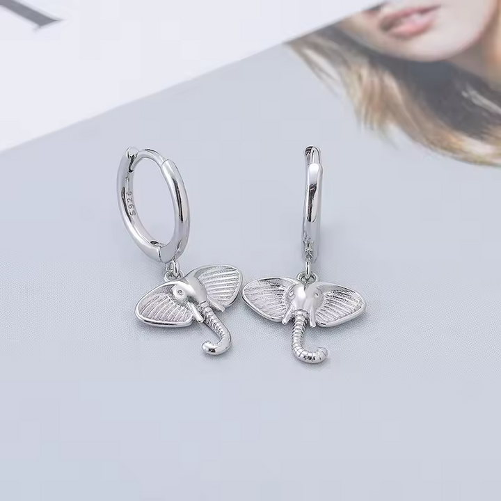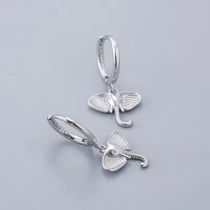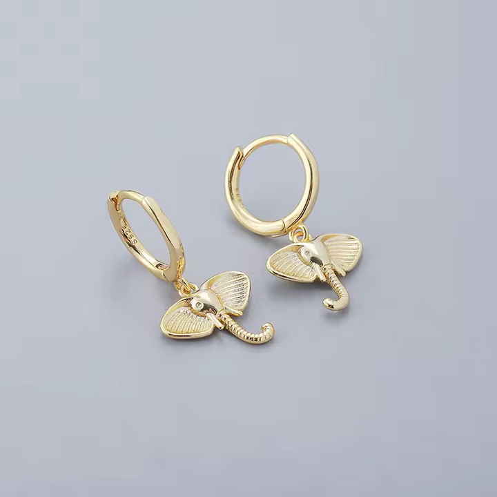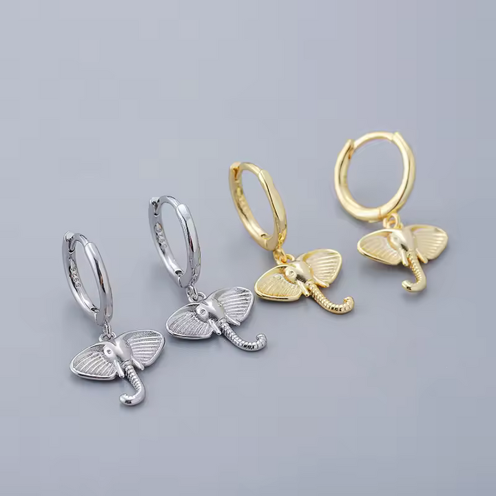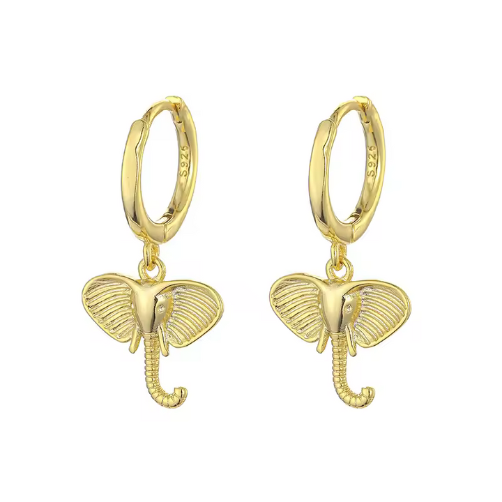 Elefanten Creolen – 925er Silber oder Vergoldet mit Hängendem Anhänger