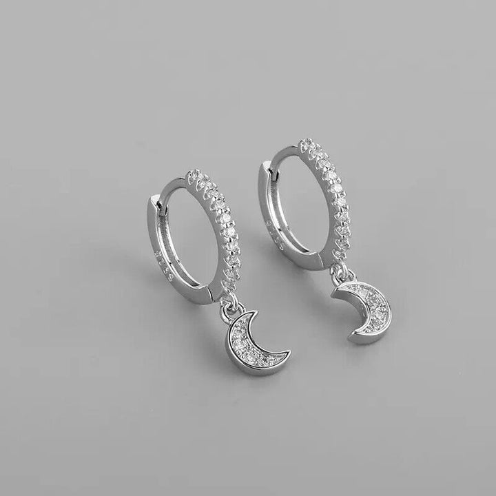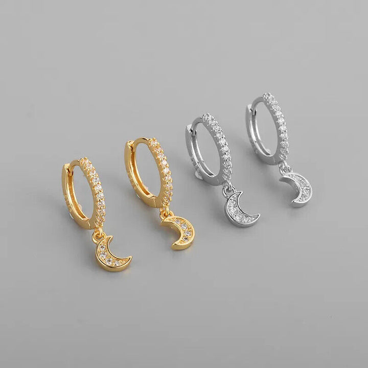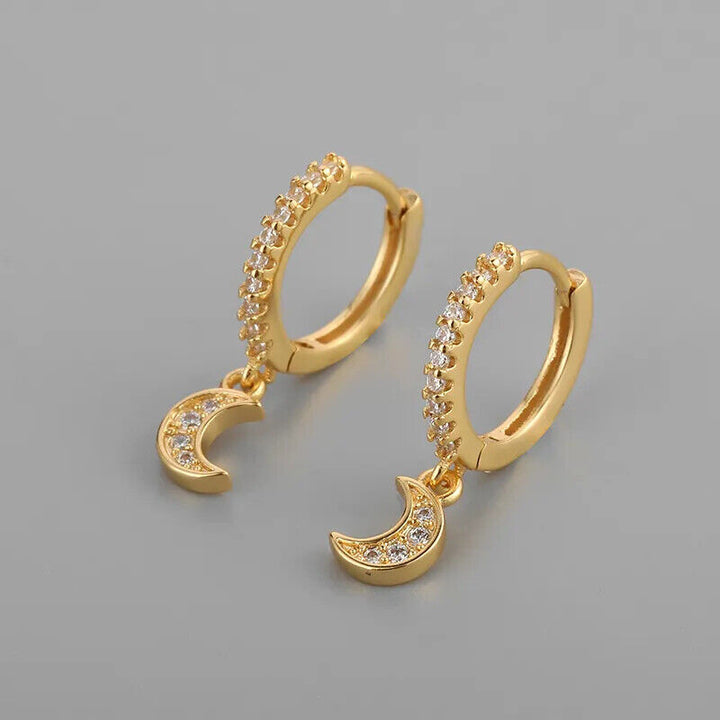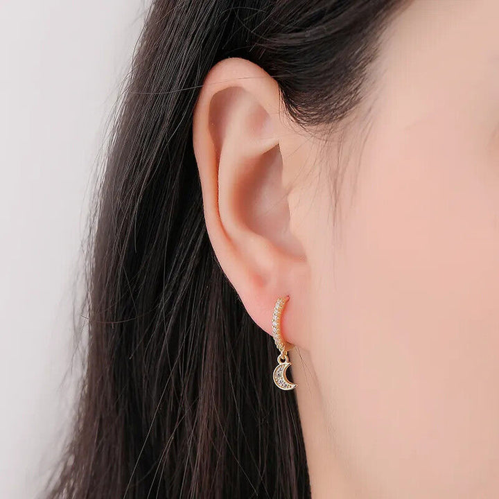 Damen Creolen Sterling Silber 925 Gemeißelt Mond mit Zirkonia Ohrringe