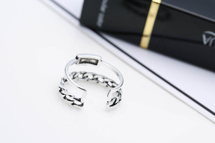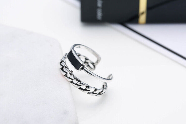 Damen Doppelring Silber 925 Geschwärzt Größe verstellbar 51-55