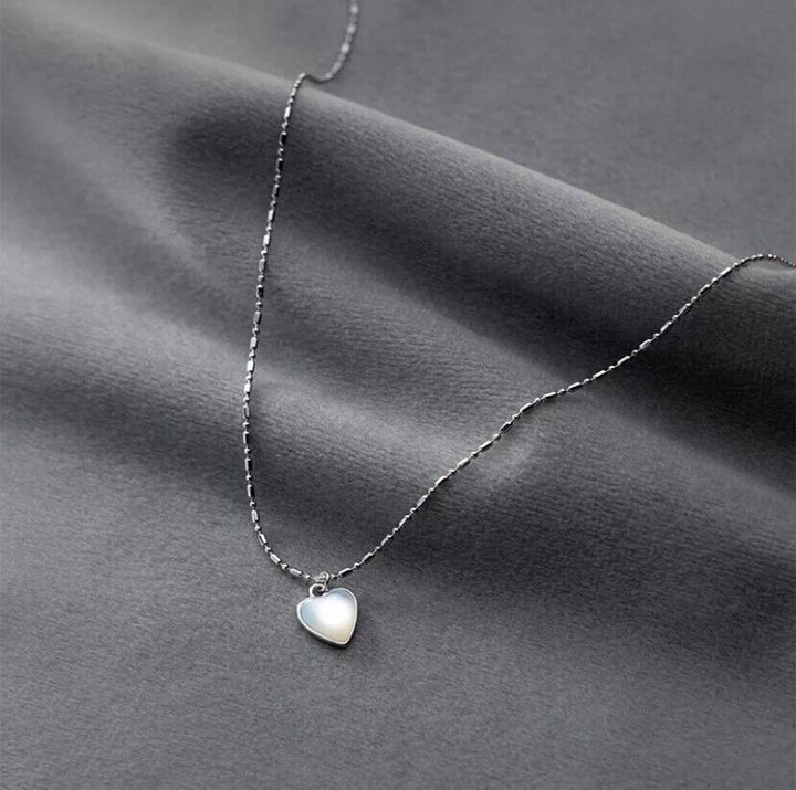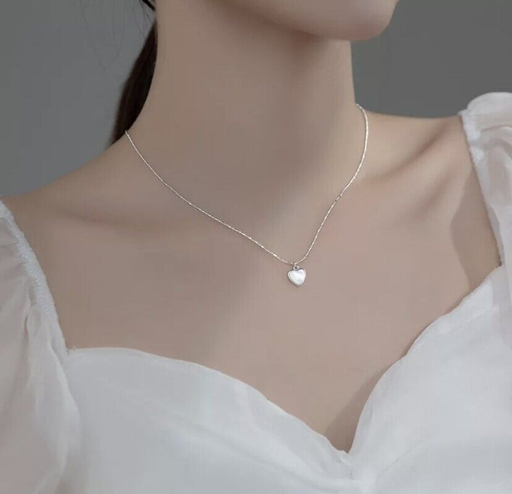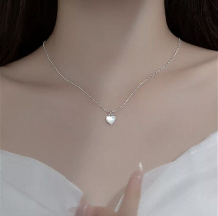 Damen Halskette Herz Sterling Silber 925 Perlmutt Zirkonia Collier