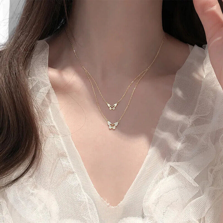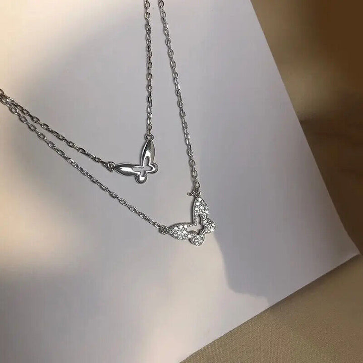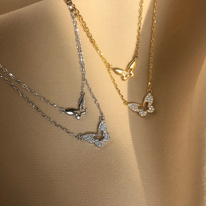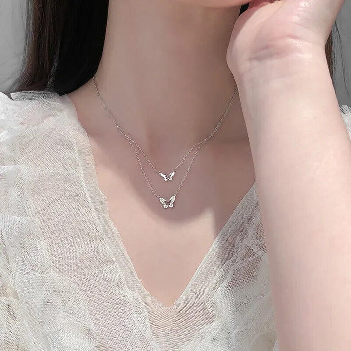 Damen Halskette mit Anhänger 2 Schmetterling Sterlingsilber 925