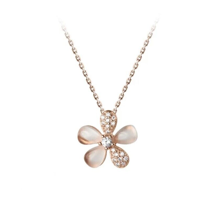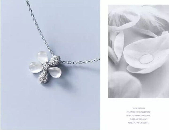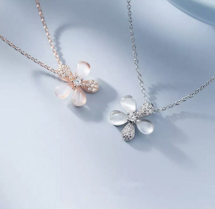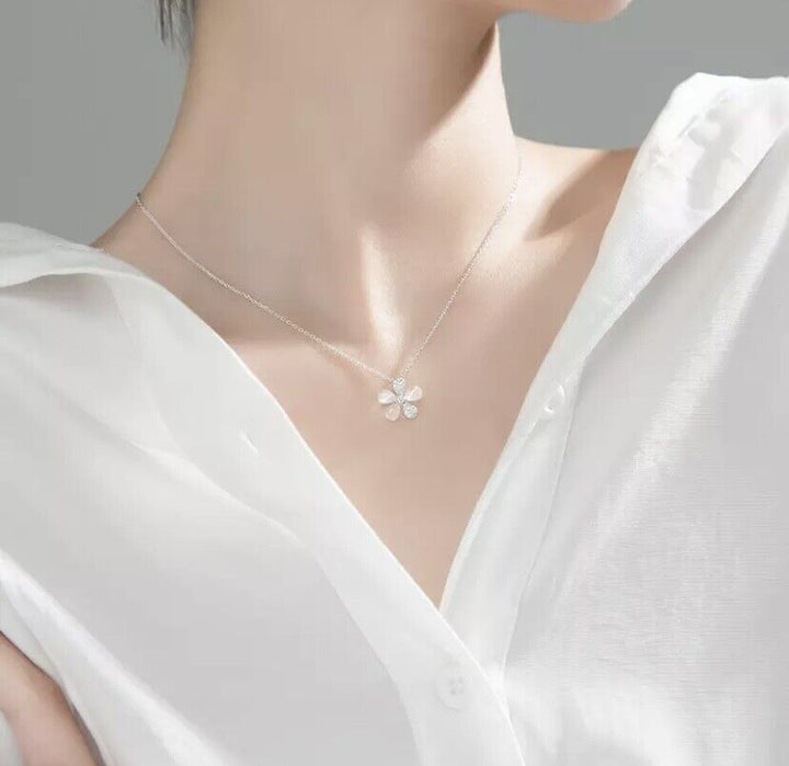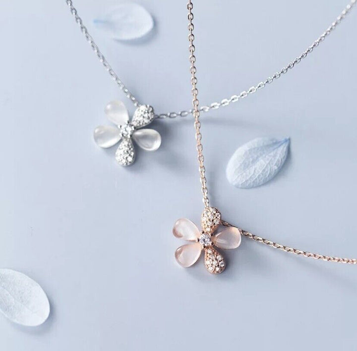 Damen Halskette mit Anhänger Opral & Zirkonia echt Silber 925 Blume