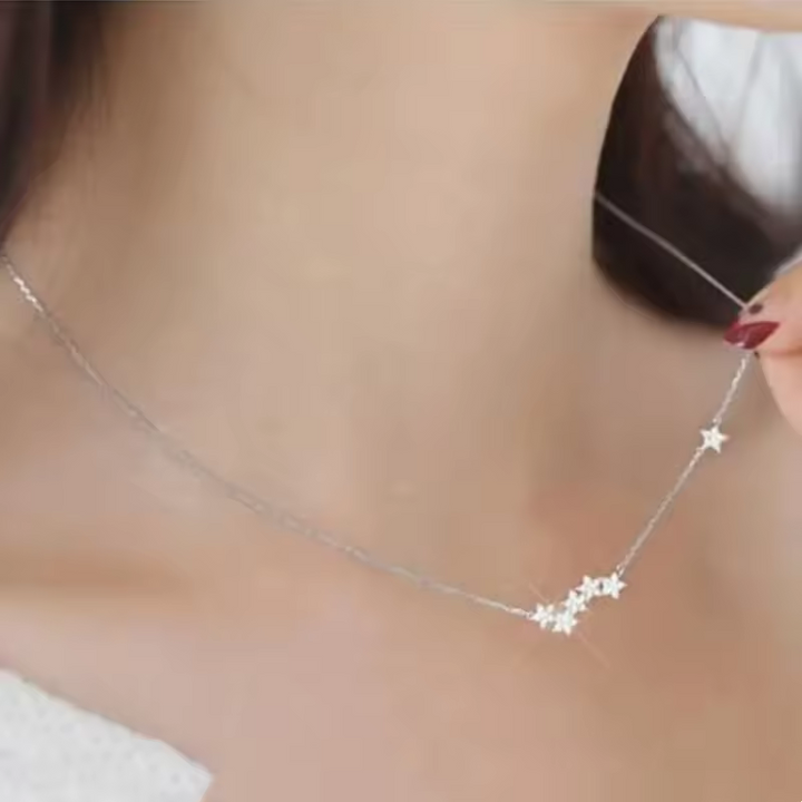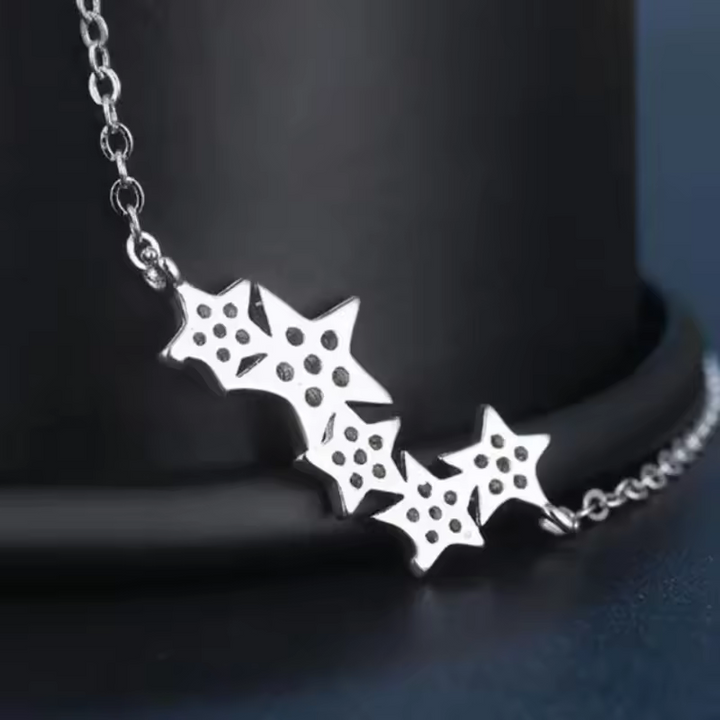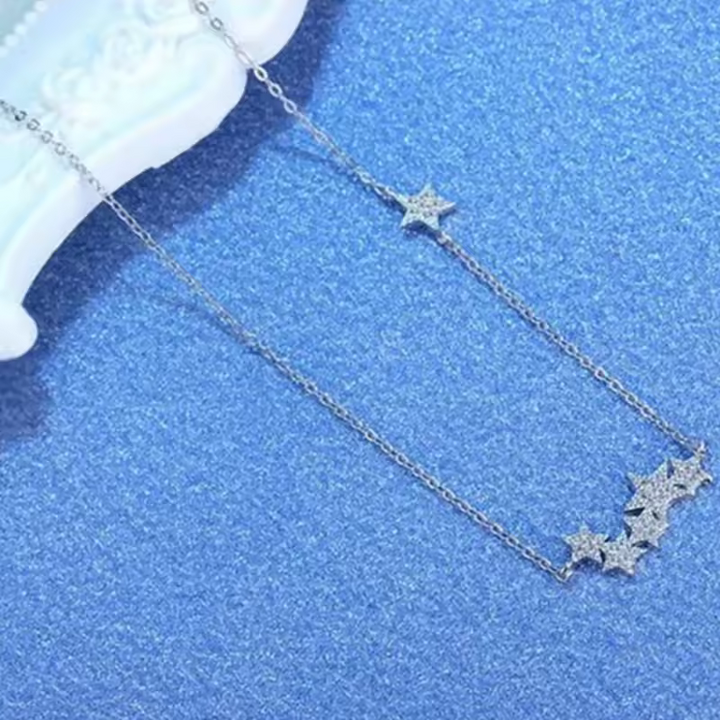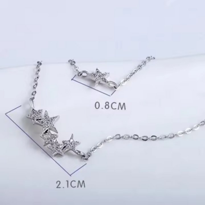 Damenhalskette mit Sternen und Zirkonia, Sterling Silber 925.