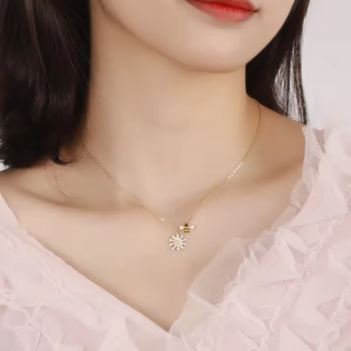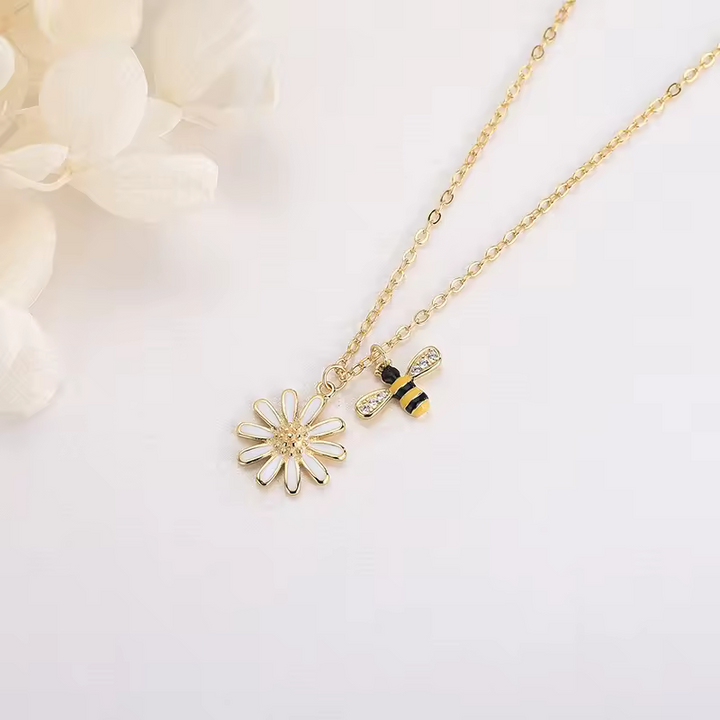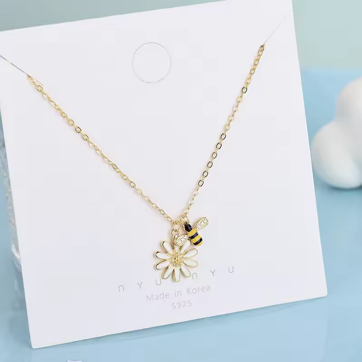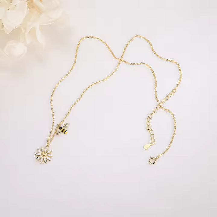 Damen Halskette mit Bienen- und Blumenanhänger, Zirkonia, Silber 925.