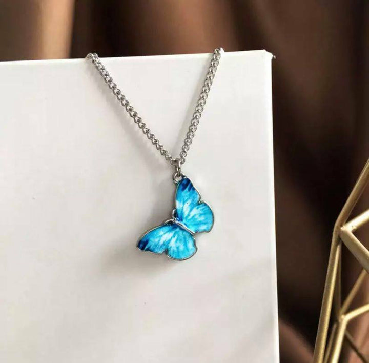 Damen Halskette mit blauem Schmetterlingsanhänger Mädchen Geschenk