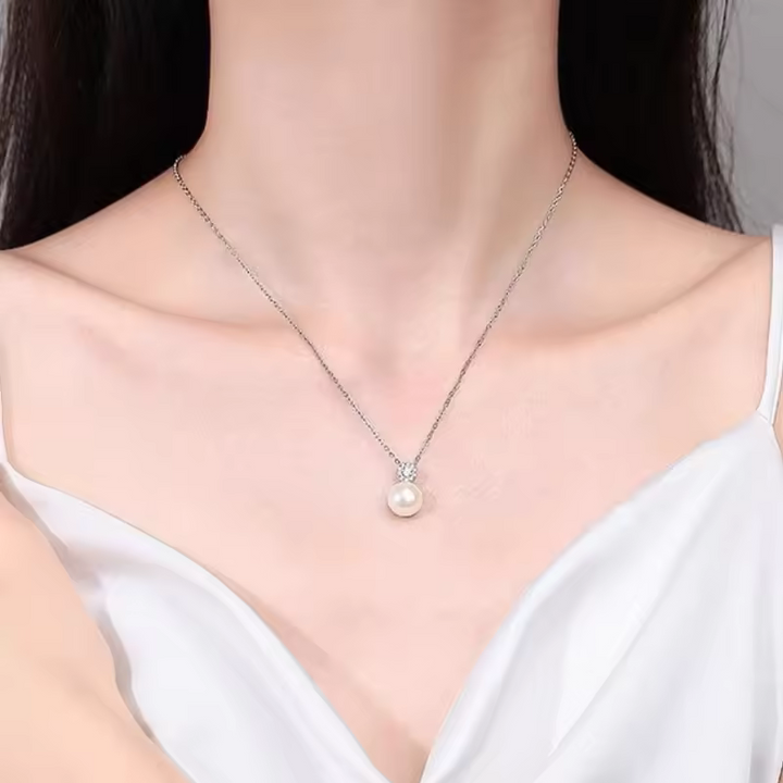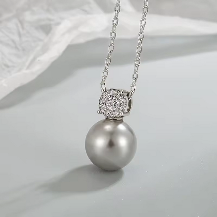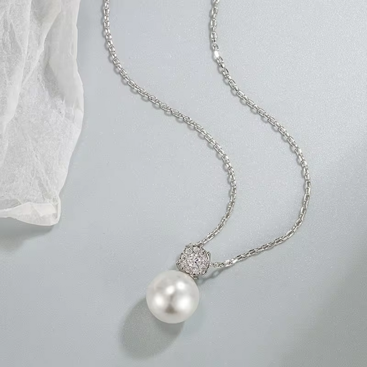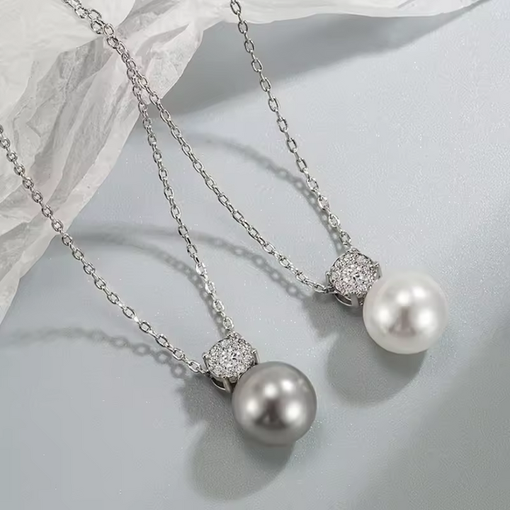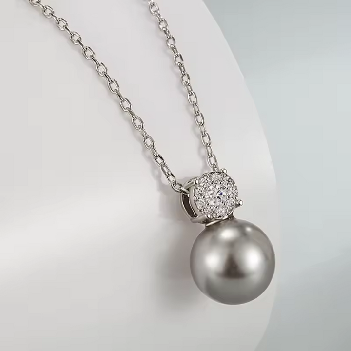 Damen Halskette mit Kugel-Anhänger, Perle und Zirkonia, Silber 925, Schwarz-Weiß