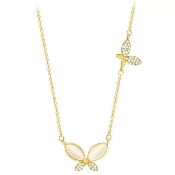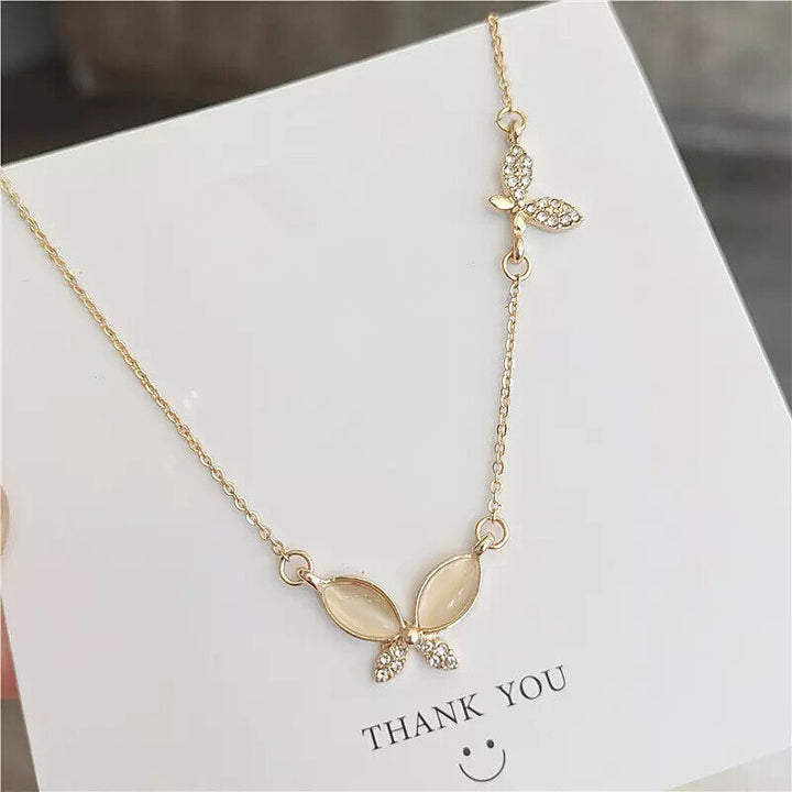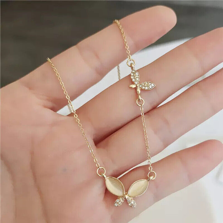 Damen Halskette mit Schmetterlingsanhänger Opal Mädchen Geschenk 44cm