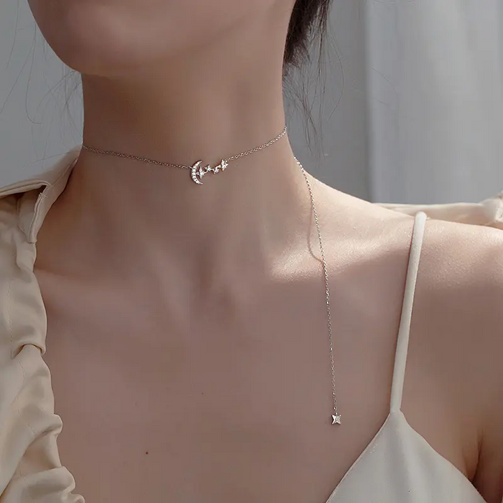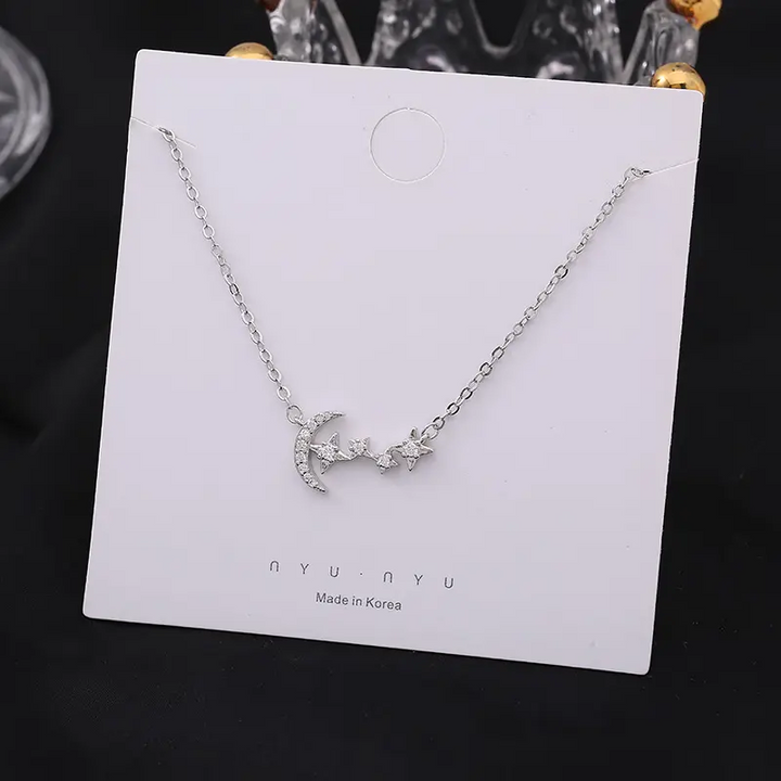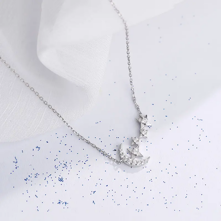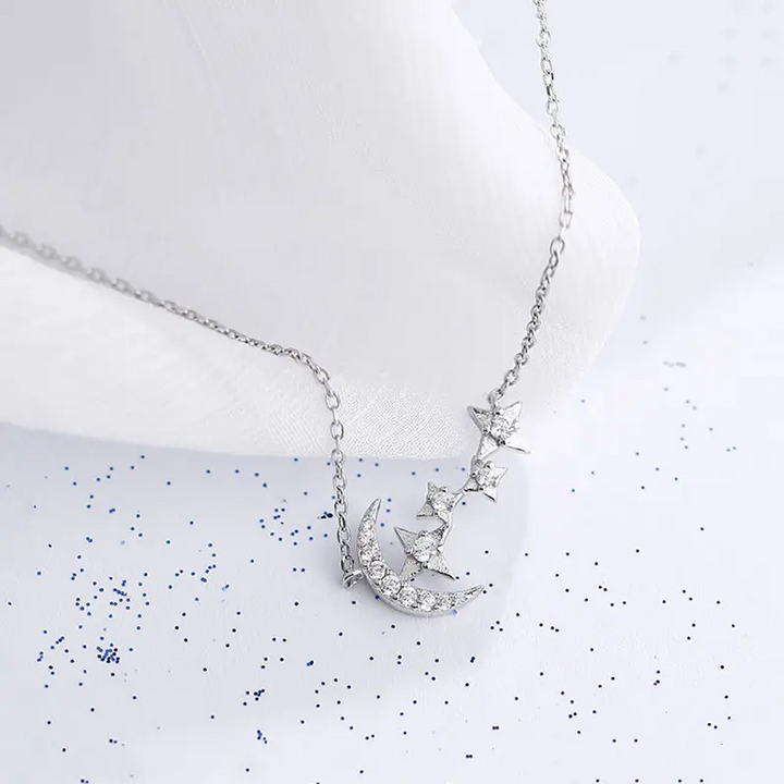 Damen Halskette Mond & Stern Sterling Silber 925 Zirkonia