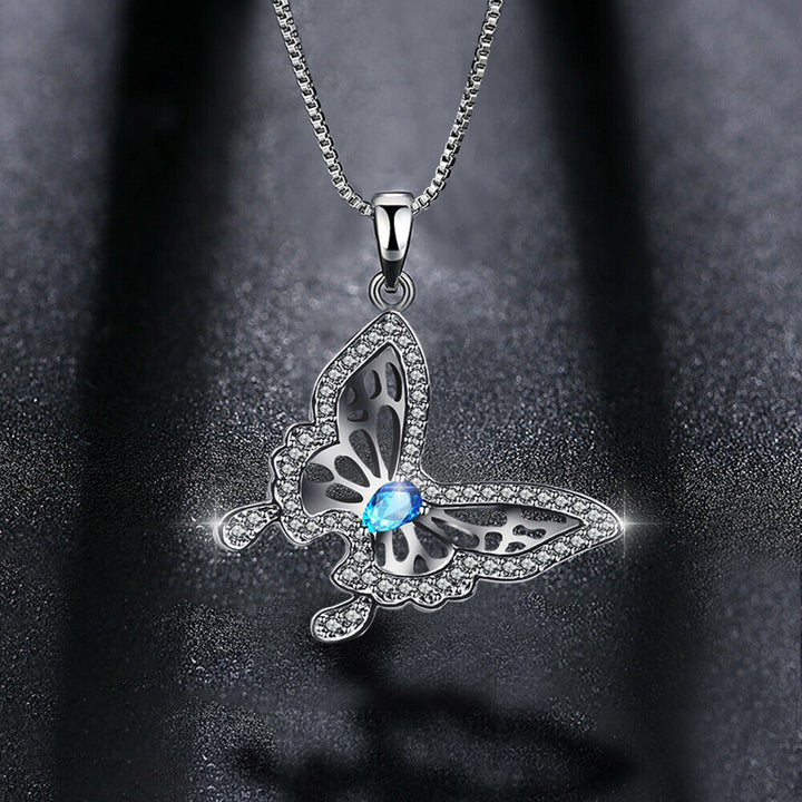 Damen Halskette Schmetterling Edelstahl Zirkonia Silber Farbe