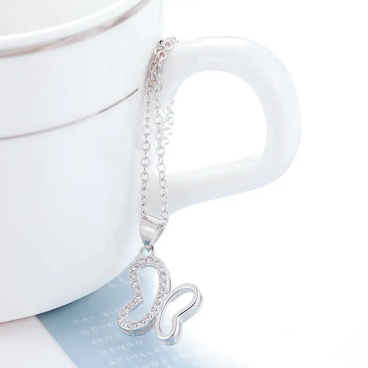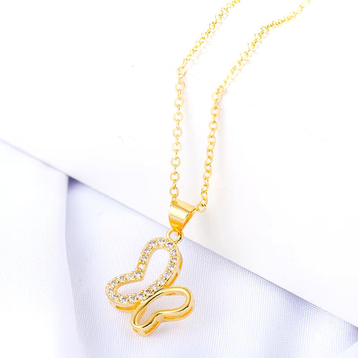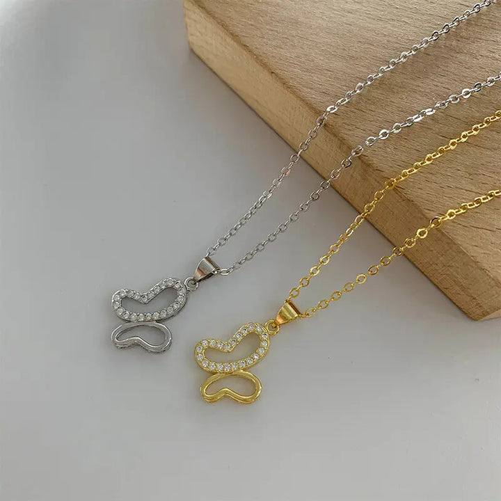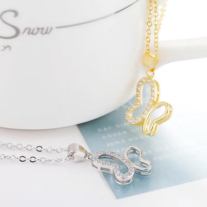 Damen Halskette Schmetterling Silber 925 mit Zirkonia, Goldn-Silbern