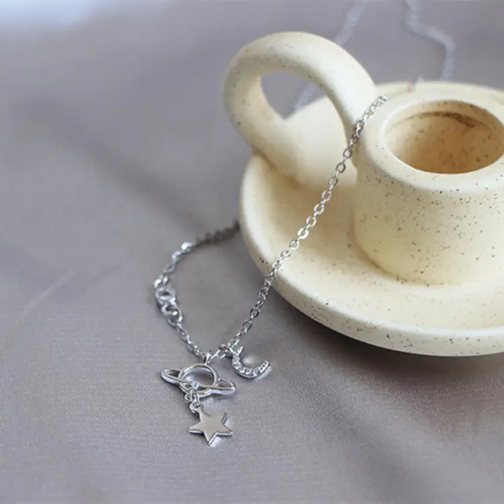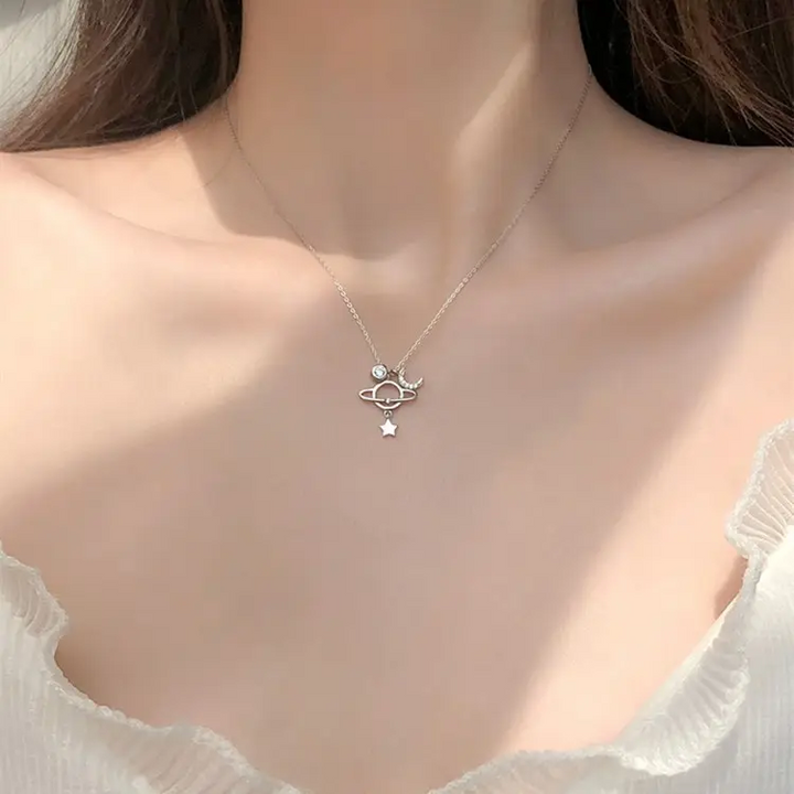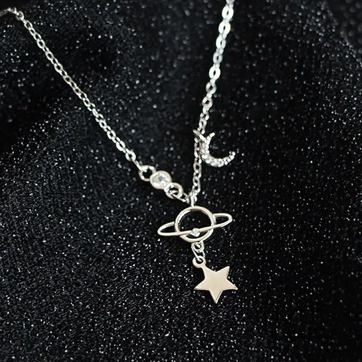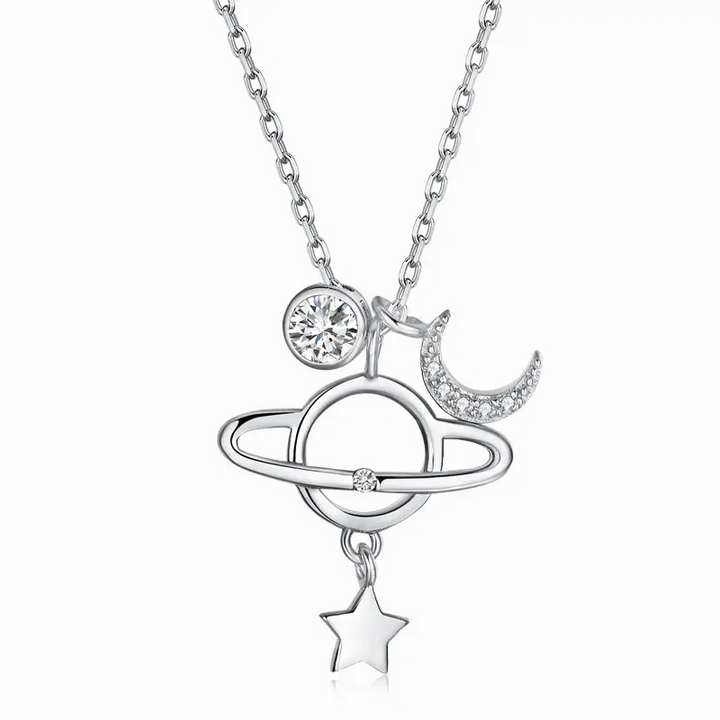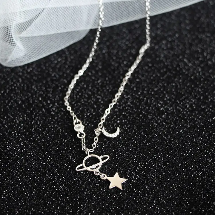Damen Halskette Sterling Silber 925 Mond - Stern mit Zirkonia