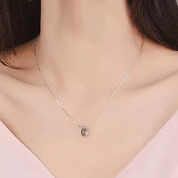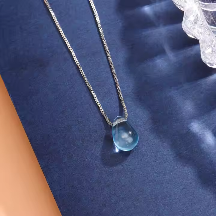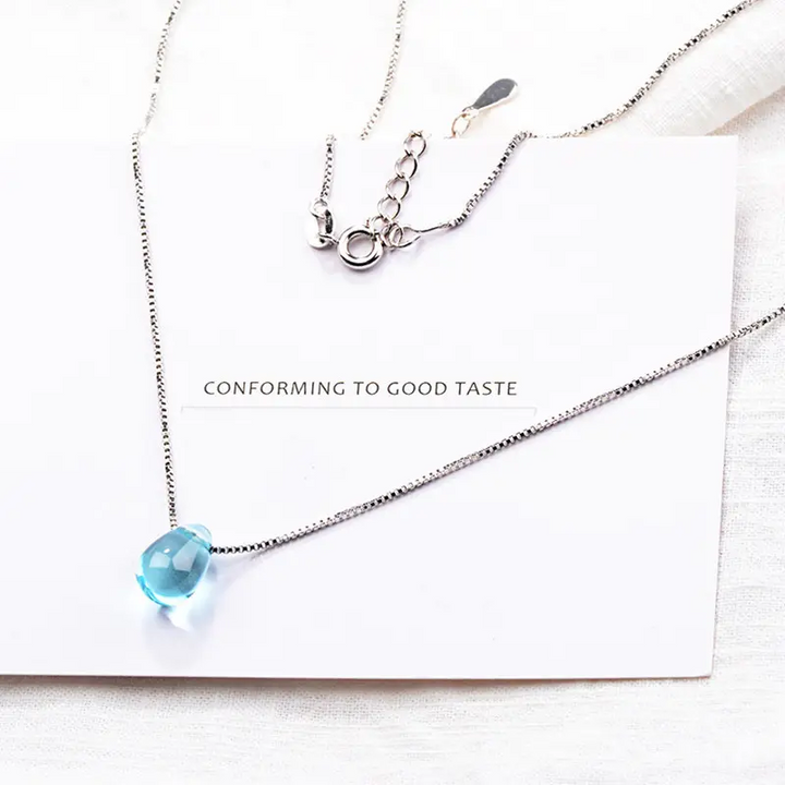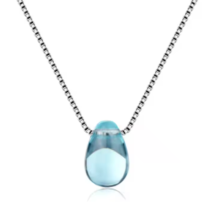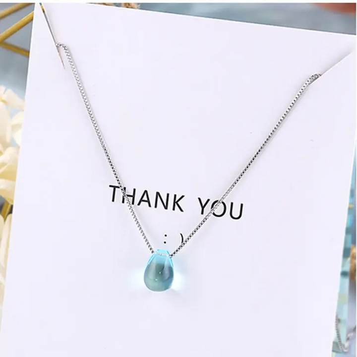Damen Halskette Sterling Silber 925 Tropfen Wasser Blau