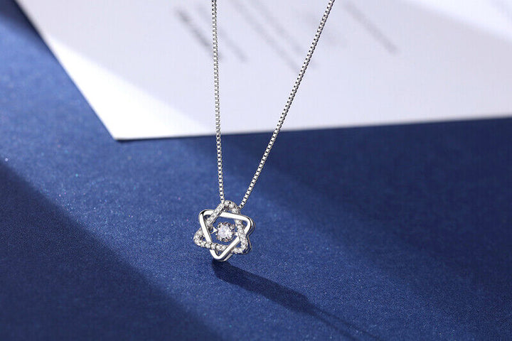 Damen Halskette Stern Sterling Silber 925 Zirkonia
