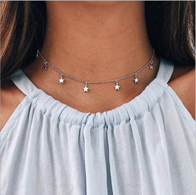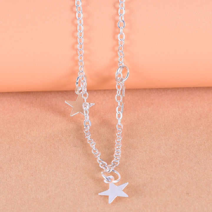 Damen Halskette Sterne Anhänger Silber Collier Schönheit