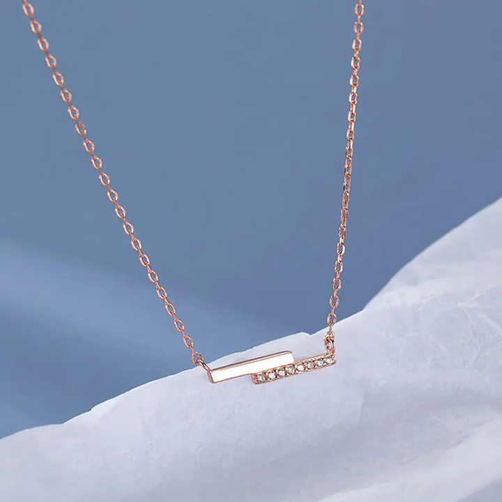 Damen Halskette Zwei Rechtecke Sterling Silber 925 Zirkonia