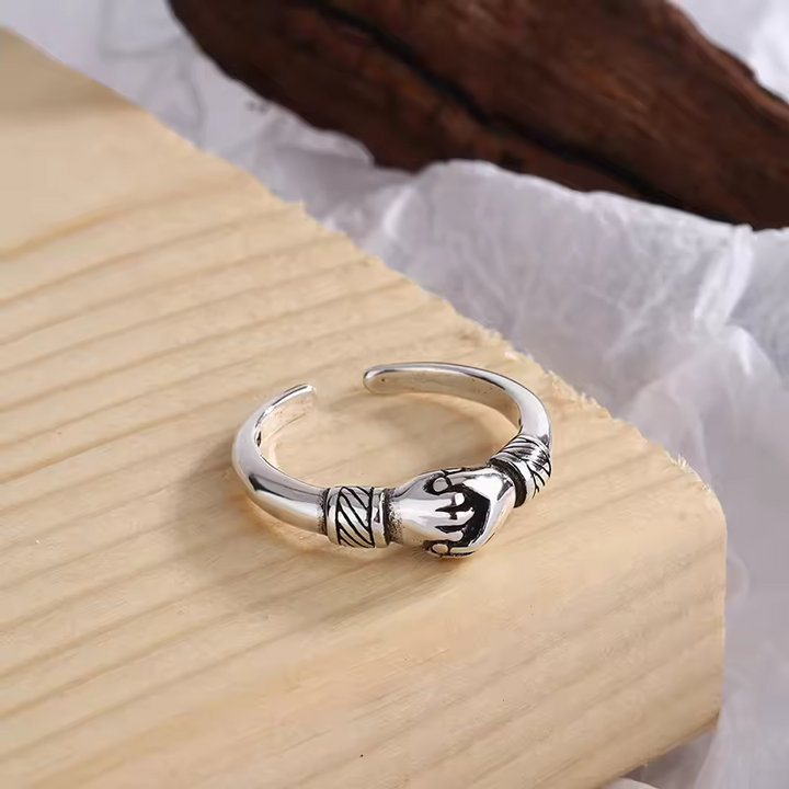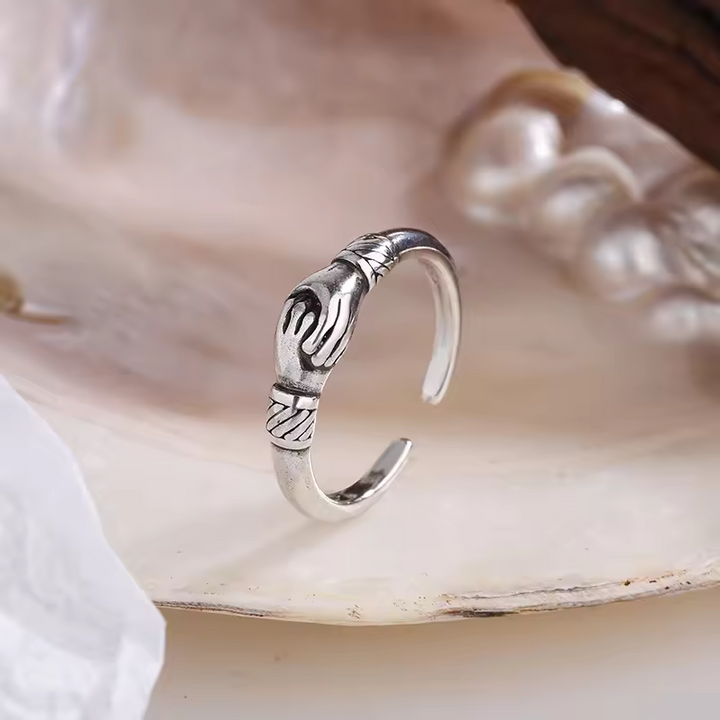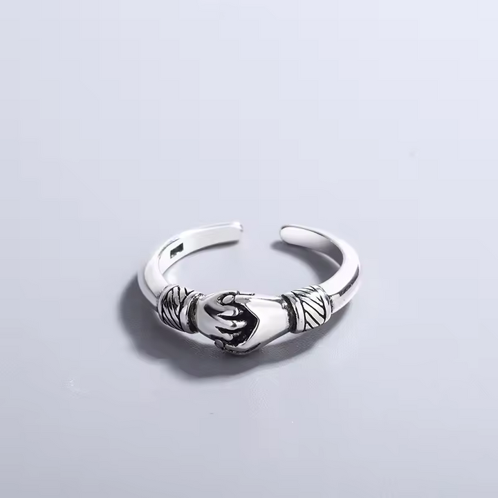 Damen-Herren Ring Hand-Motiv Silber 925, geschwärzt und größenverstellbar