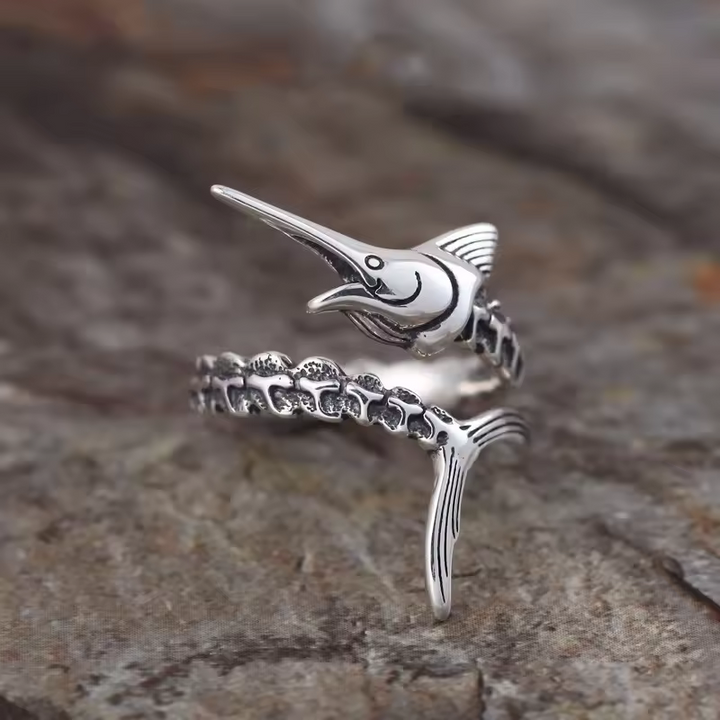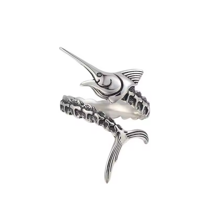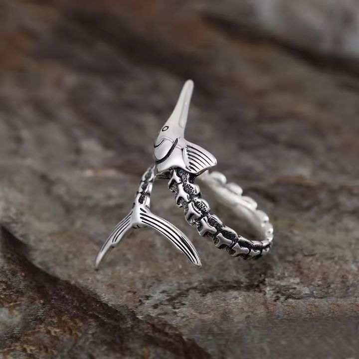 Damen Herren Ring mit Fisch motiv Silbern geschwärzt