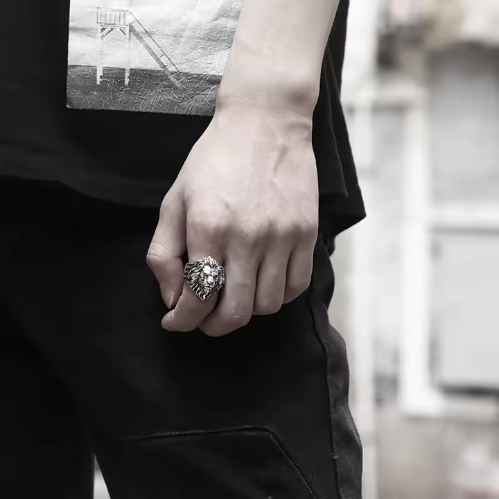 Damen- und Herrenring, Löwen Motiv, Sterling Silber, geschwärzt, größenverstellbar