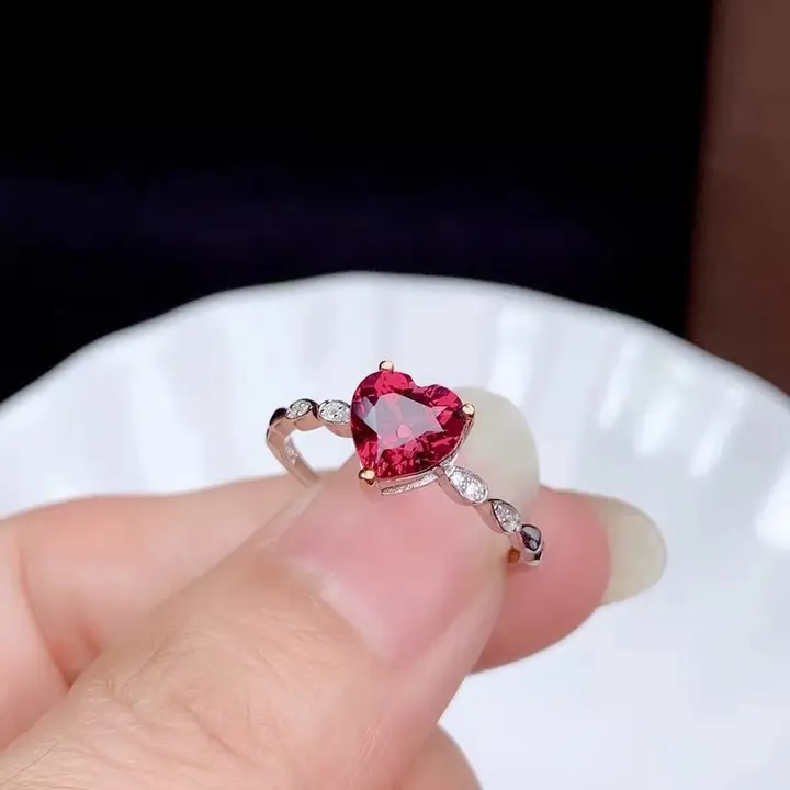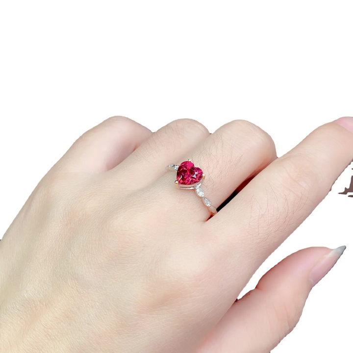 Damen Herz Ring Damen Zirkonia Rot Anpassbar für alle Größen