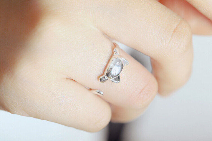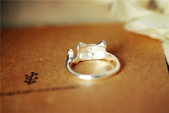 Damen Katzenring versilbert Allergie vorbeugen offener Ring 49-55