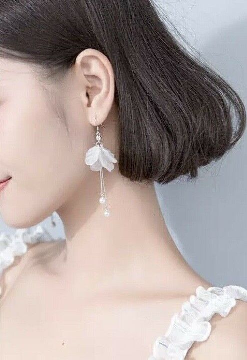 Damen Ohrhänger Sterling Silber 925 Blüte Lasurit Perle Ohrringe